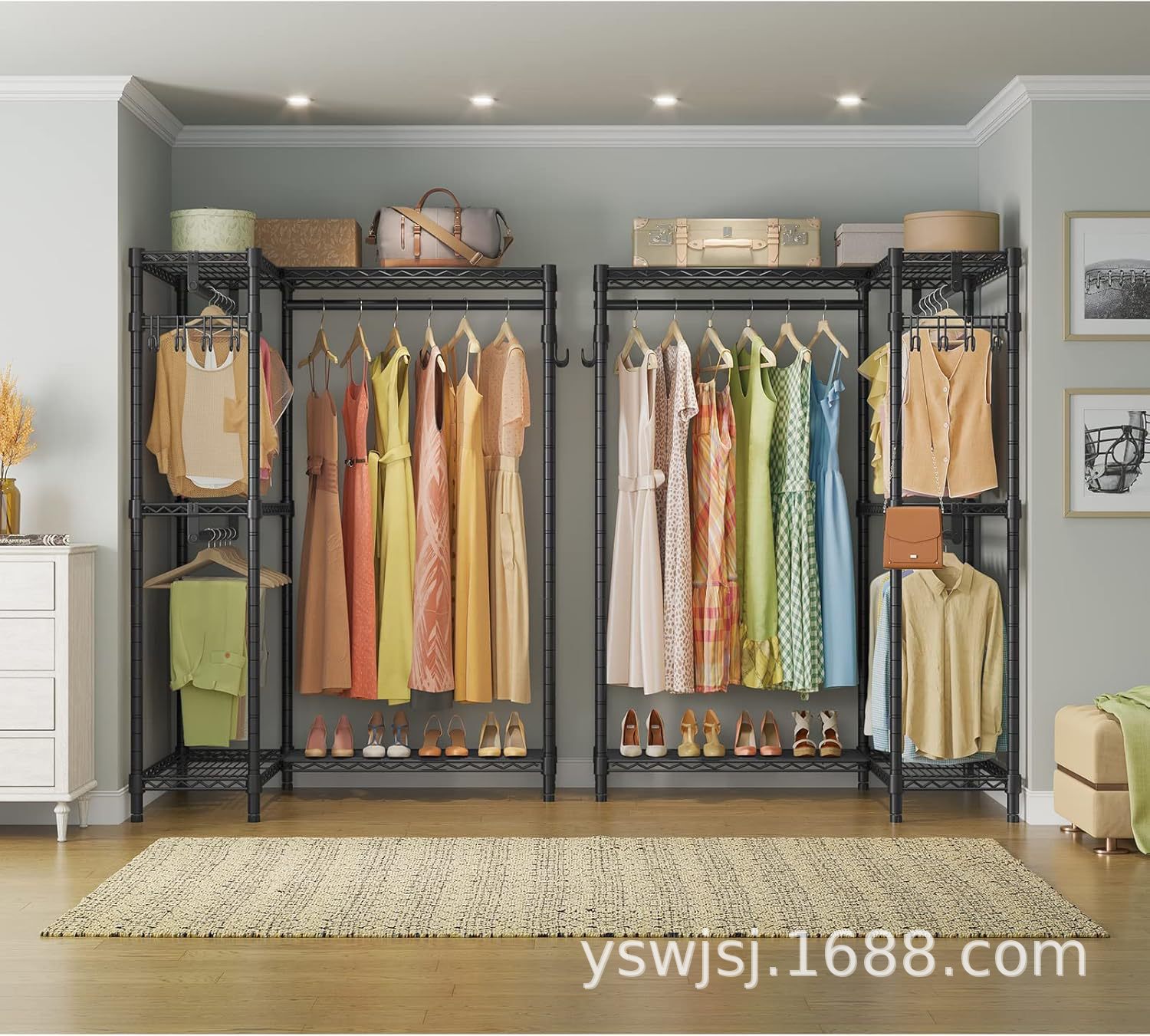 맞춤형 간단한 기숙사 옷장 가변 코너 옷장 바닥 스탠딩 스토리지 랙 강철 조절 가능한 의류 디스플레이 랙
