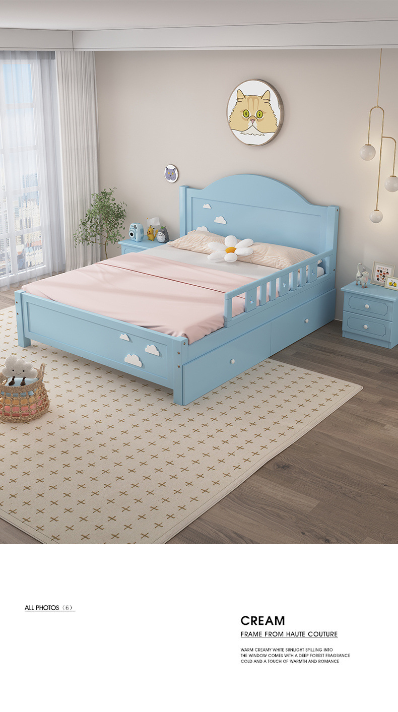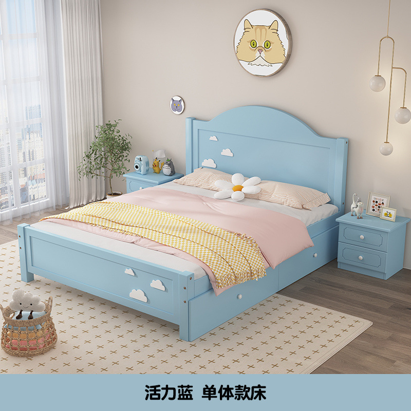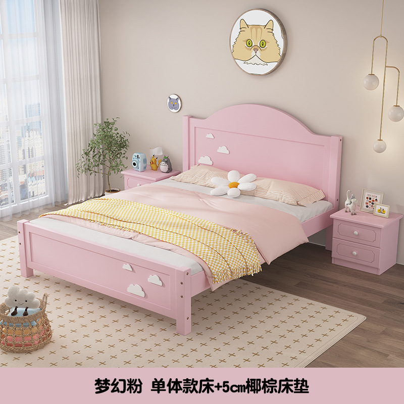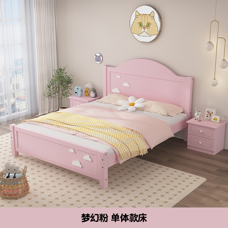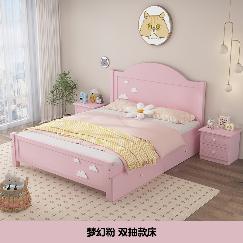 어린이 침대 소년과 소녀 인터넷 연예인 구름 단단한 나무 침대 핑크 공주 침대 1.2m 싱글 서랍 침대 유형 가드 레일 침대