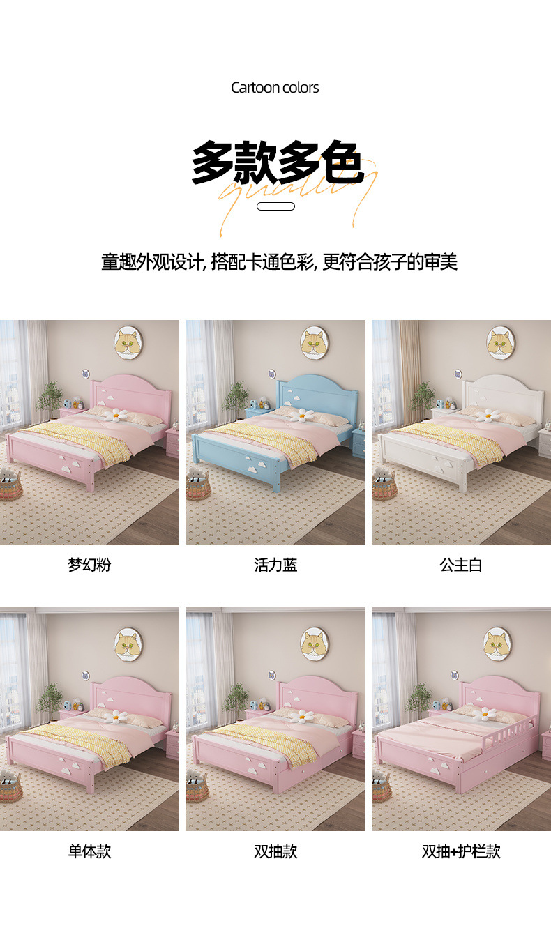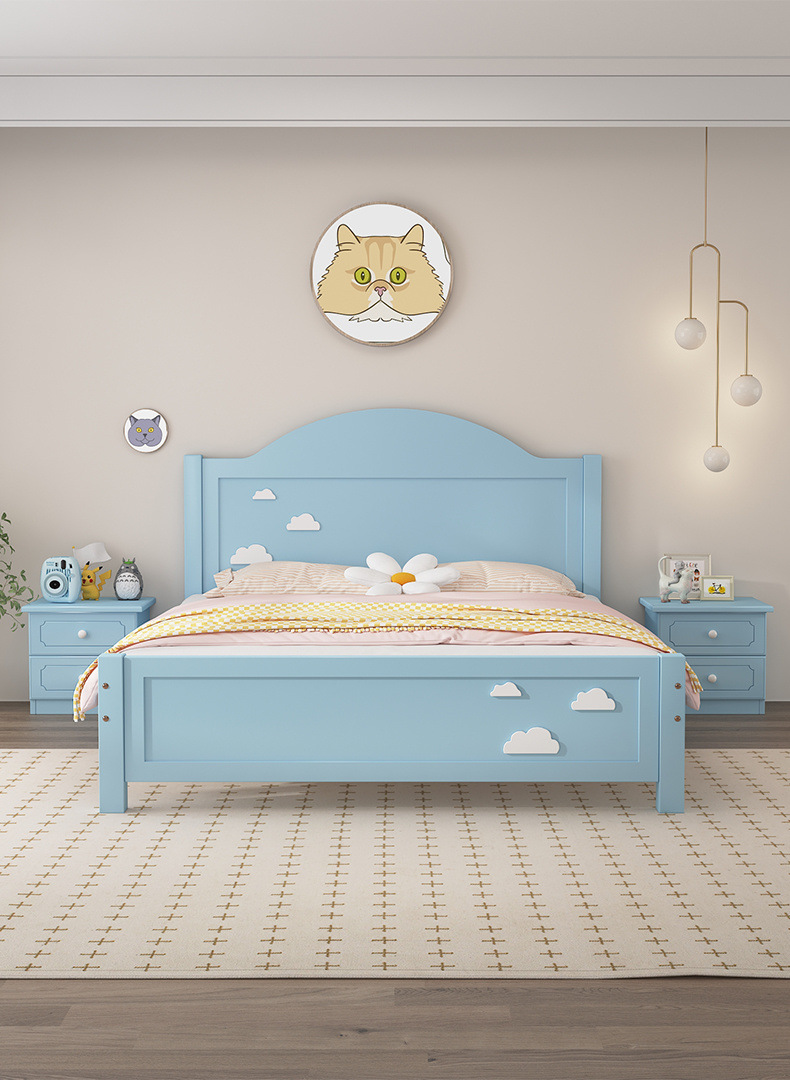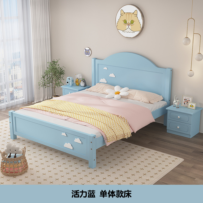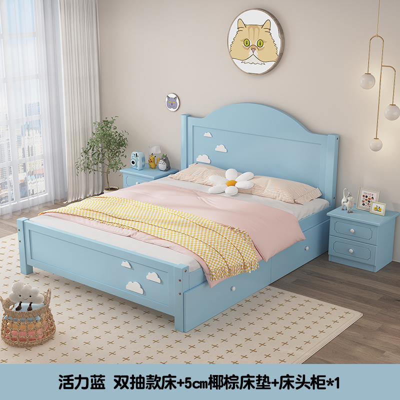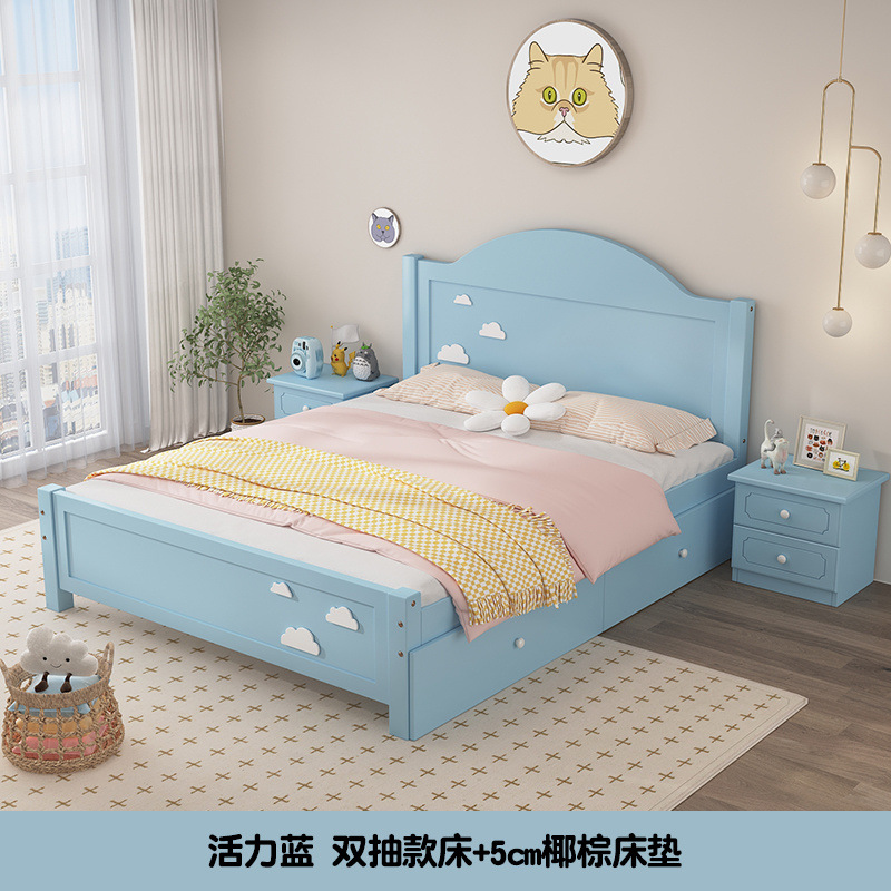 어린이 침대 소년과 소녀 인터넷 연예인 구름 단단한 나무 침대 핑크 공주 침대 1.2m 싱글 서랍 침대 유형 가드 레일 침대