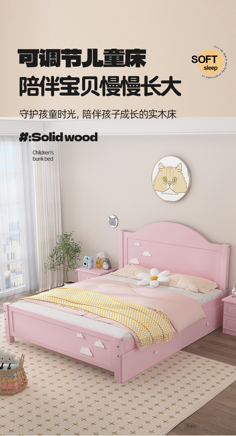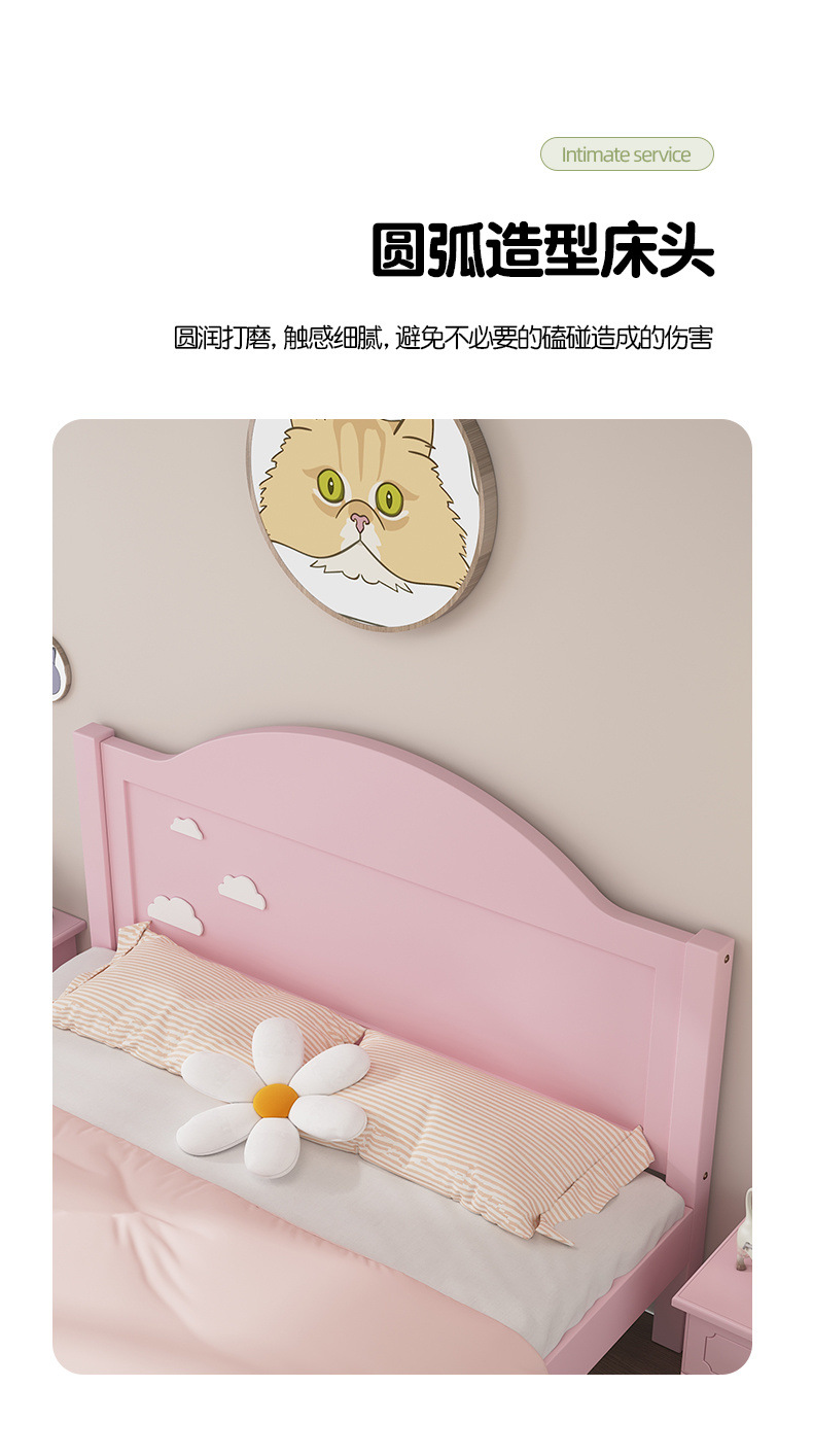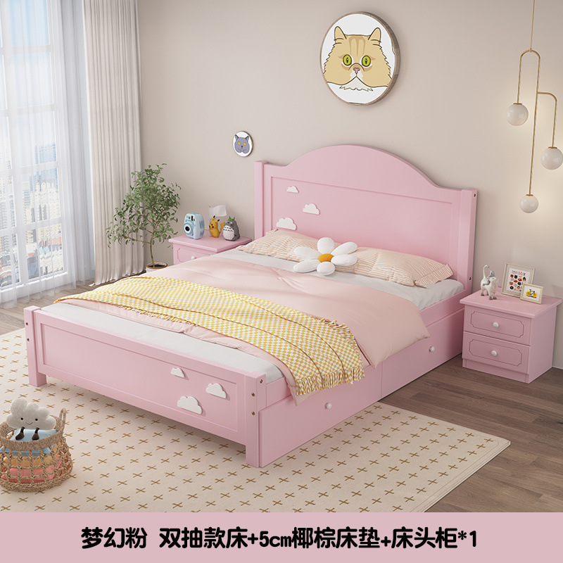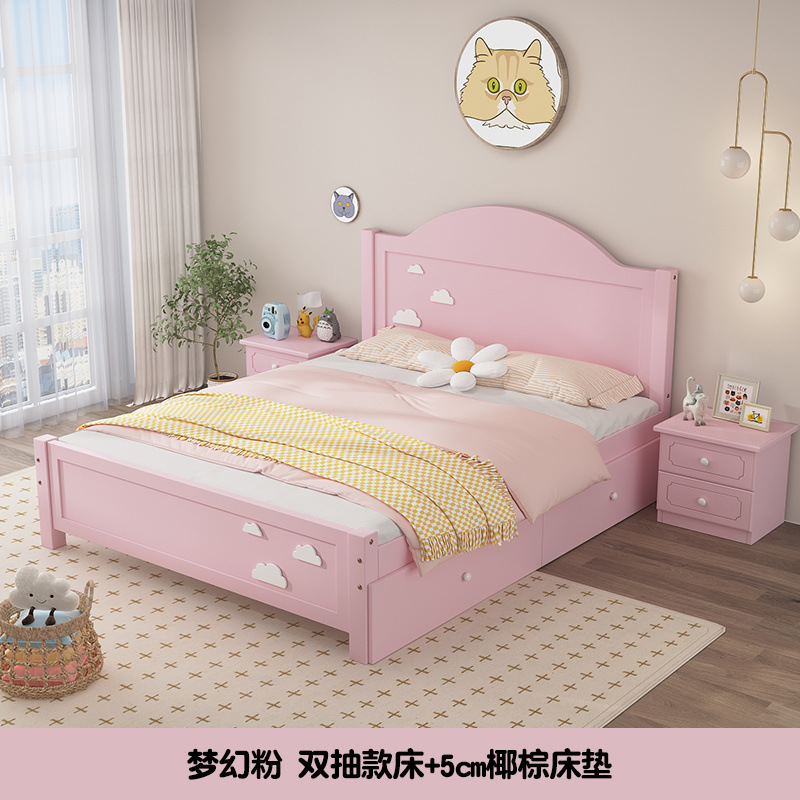 어린이 침대 소년과 소녀 인터넷 연예인 구름 단단한 나무 침대 핑크 공주 침대 1.2m 싱글 서랍 침대 유형 가드 레일 침대스토어 가기