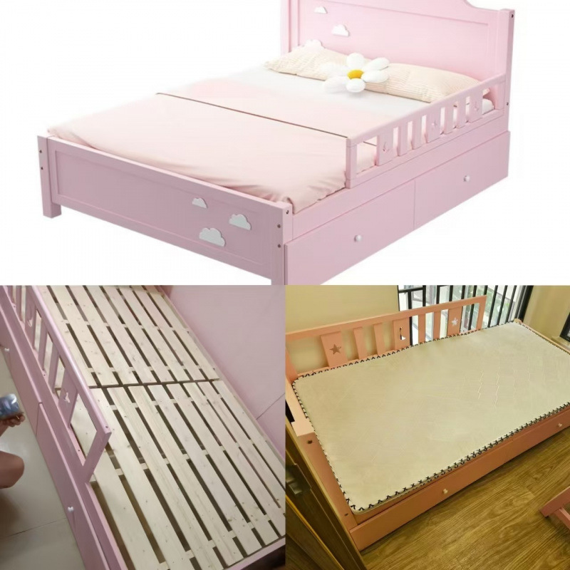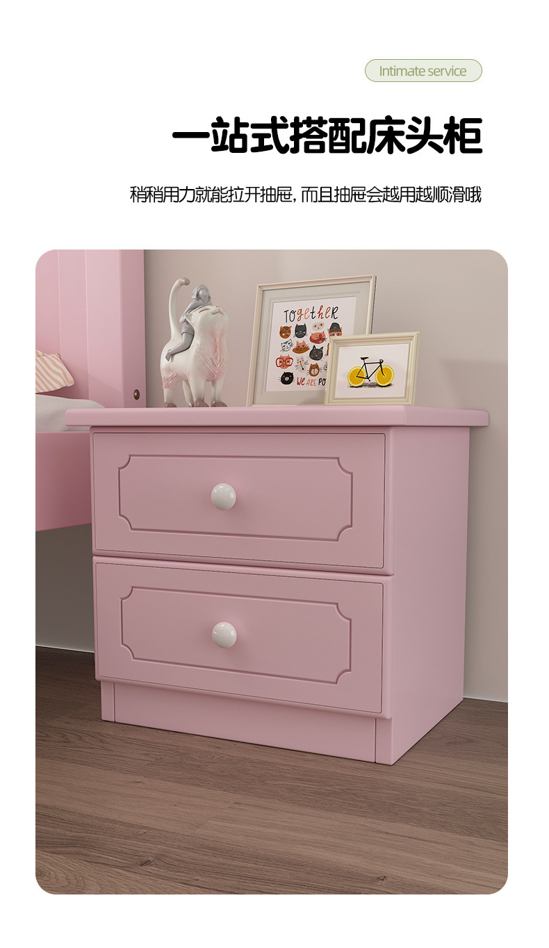 • 더블 서랍 + 가드레일 침대 + 매트리스 + 캐비닛 1개(색상은 핑크/블루 선택 가능)