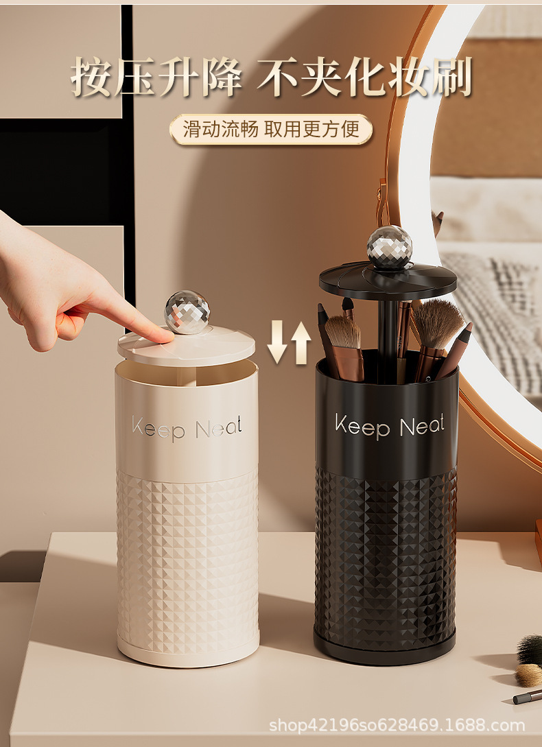 자동 리프팅 메이크업 보관함 뚜껑이 있는 방진 화장대 데스크탑 프레스 브러쉬 눈썹 연필 화장품 보관함