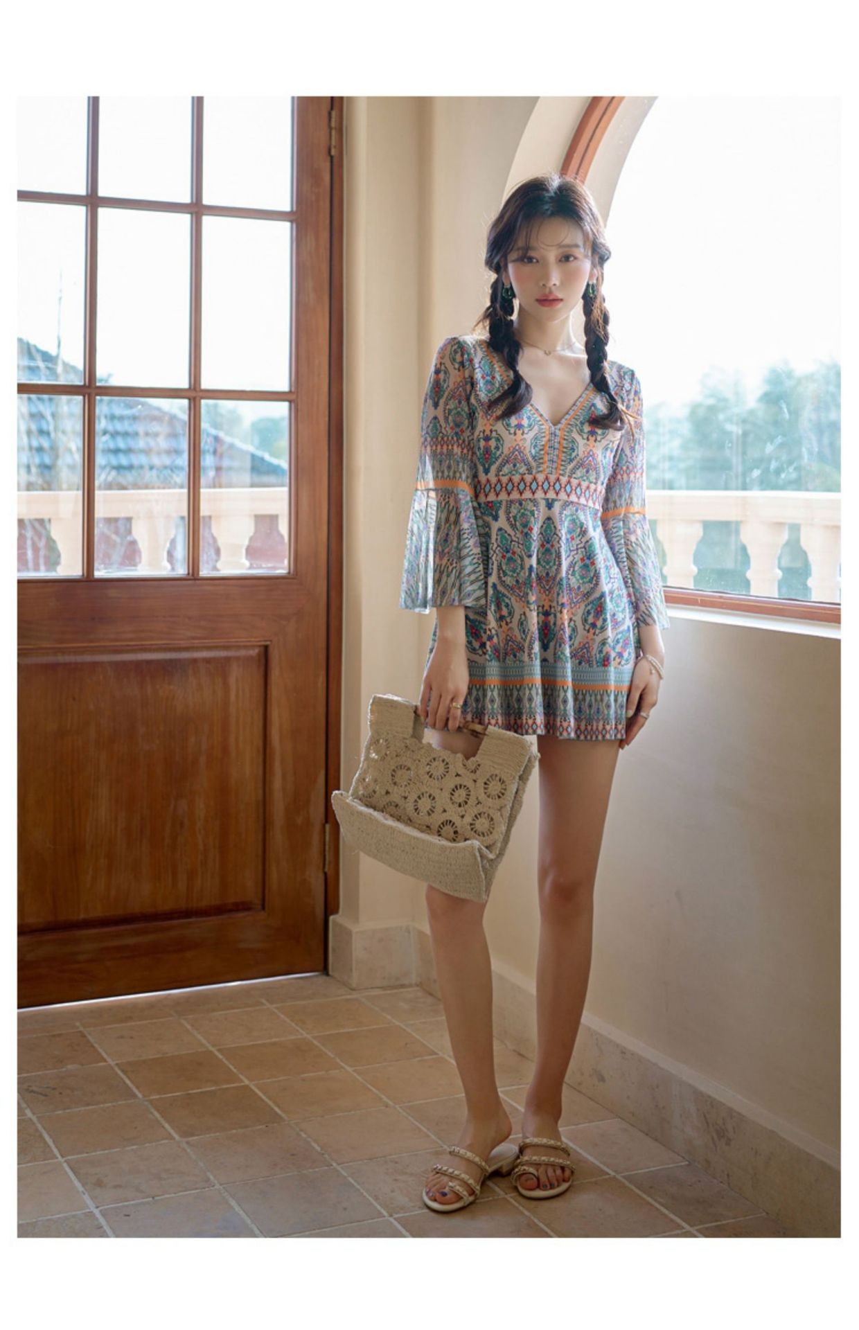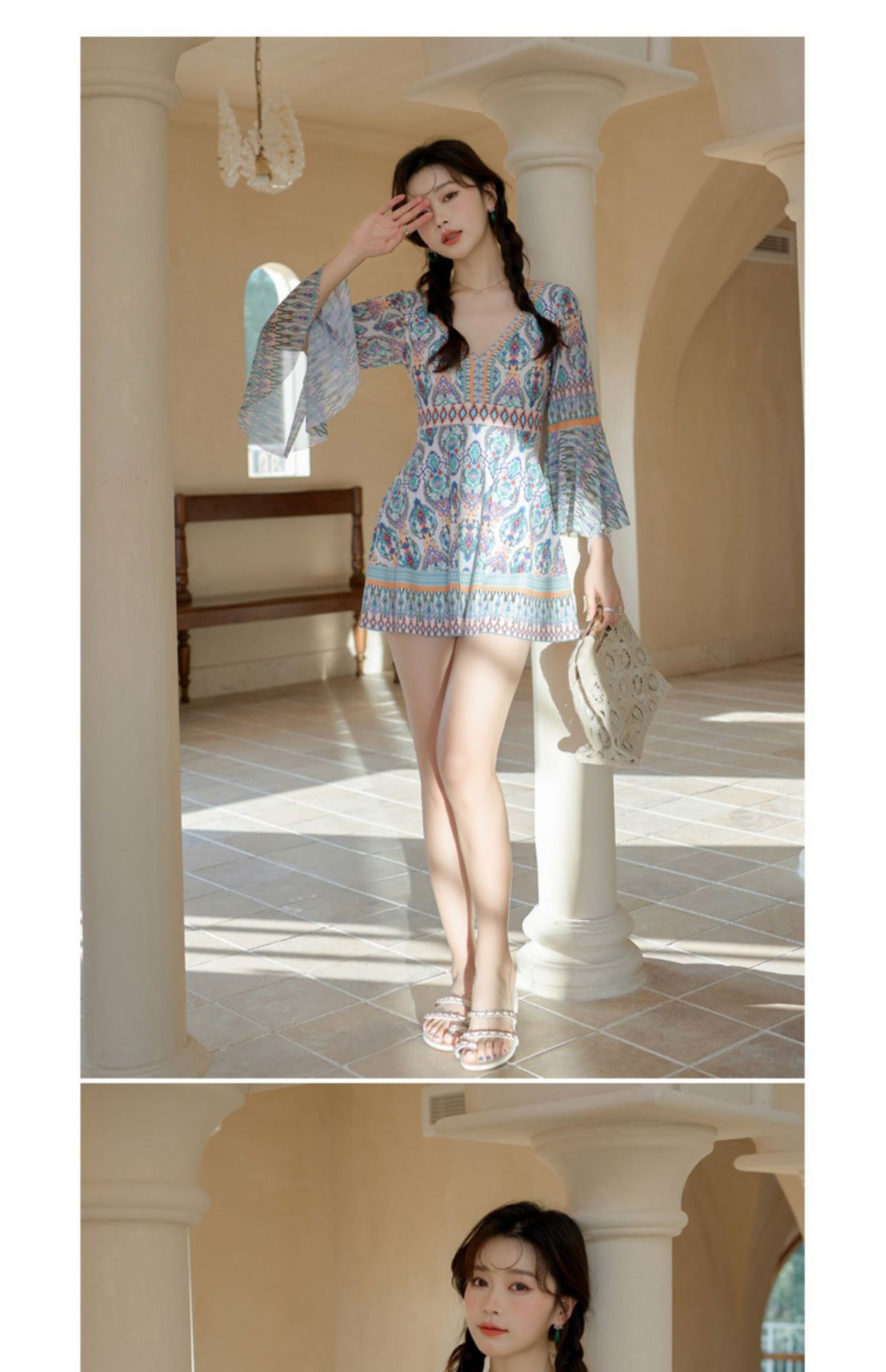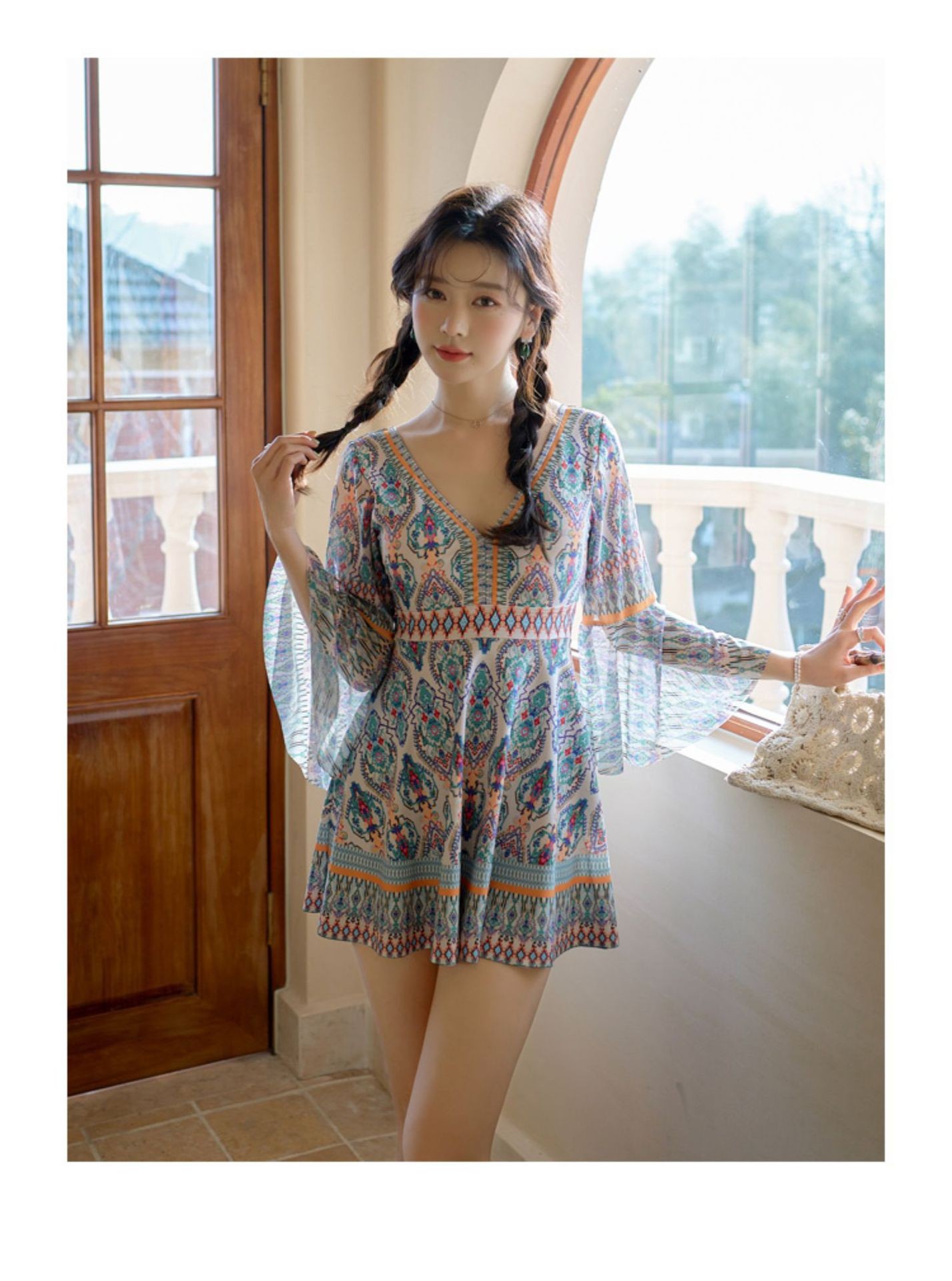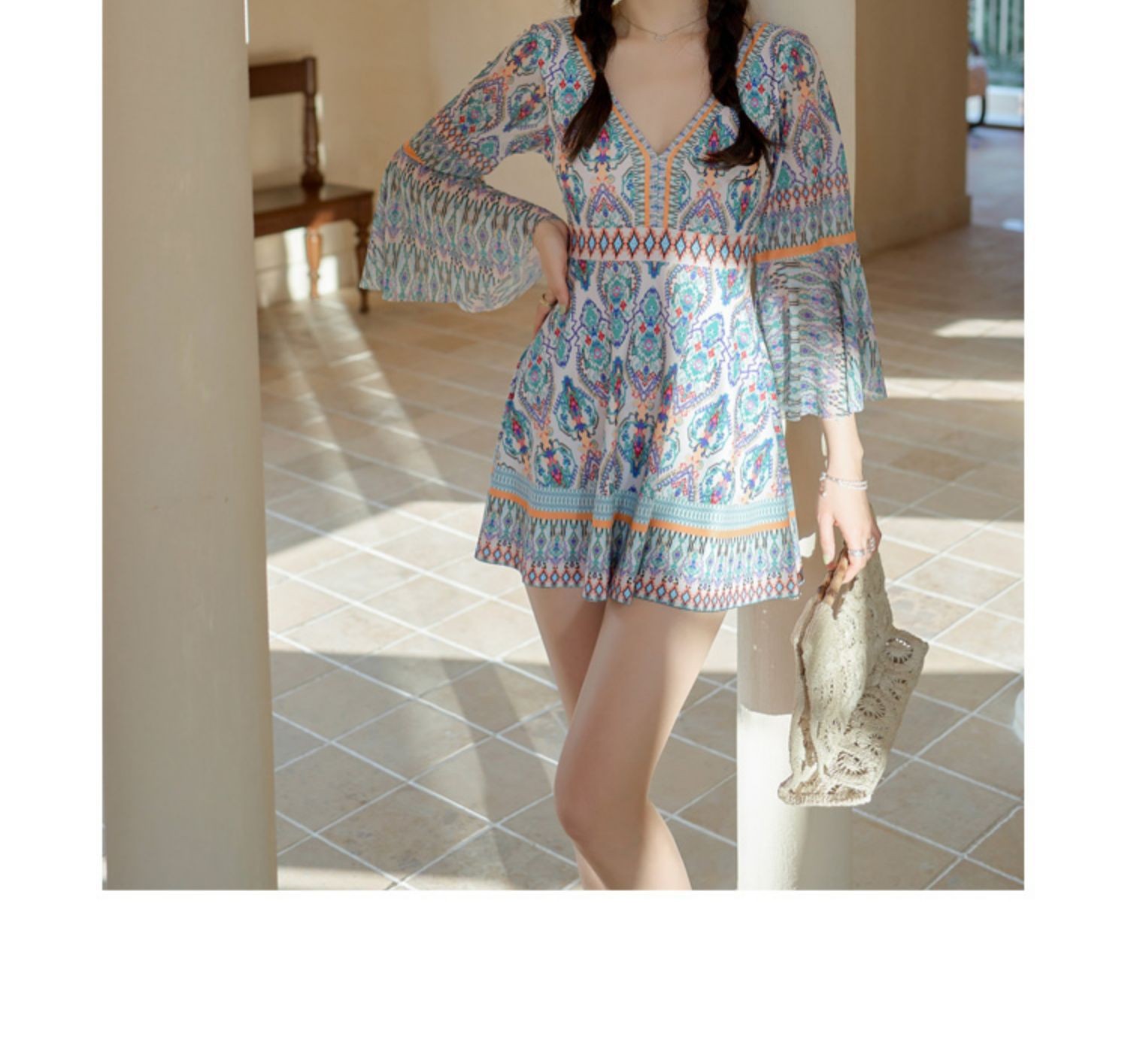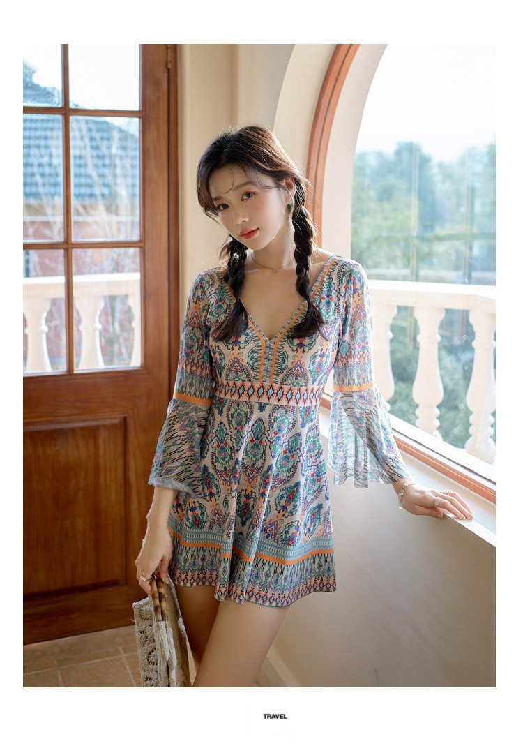 커플 수영복, 리조트 스타일, 슬리밍, 배 커버, 원피스, 보수적, 사각, 온천, 소매, 자외선 차단, 여성용 플러스 사이즈 수영복스토어 가기