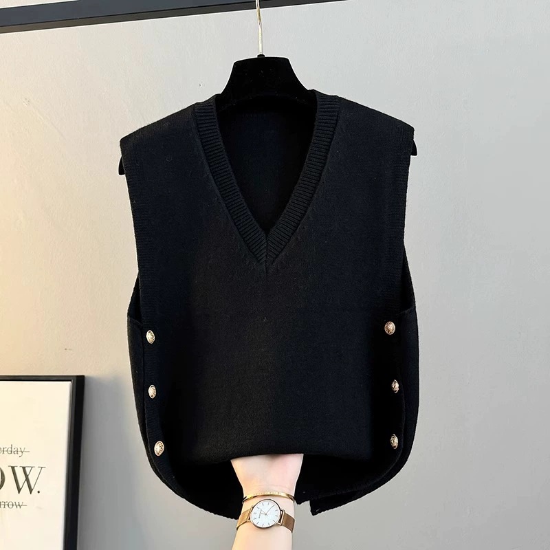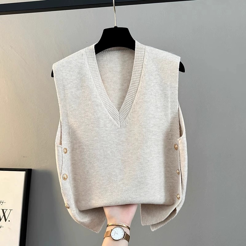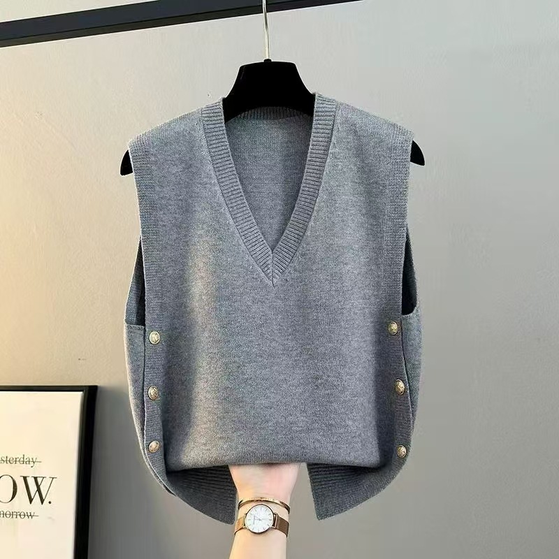 조끼 여성 2025 새로운 봄, 가을 느슨한 겉옷 니트 조끼 v 넥 스웨터 재킷 양복 조끼 겨울 조끼스토어 가기