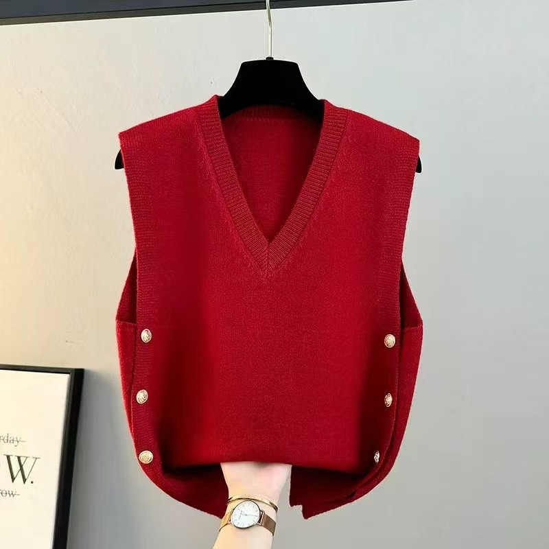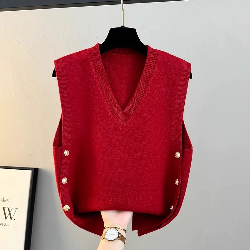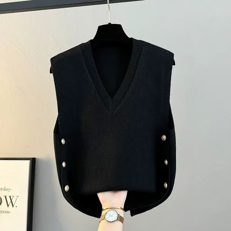 조끼 여성 2025 새로운 봄, 가을 느슨한 겉옷 니트 조끼 v 넥 스웨터 재킷 양복 조끼 겨울 조끼