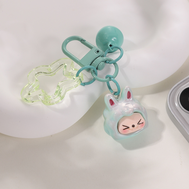 3D KI 만화 귀여운 벨 키 체인 펜던트 귀여운 토끼 귀 휴대 전화 로프 펜던트 헤드폰 쉘 가방 액세서리