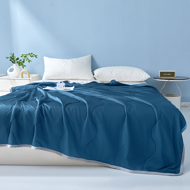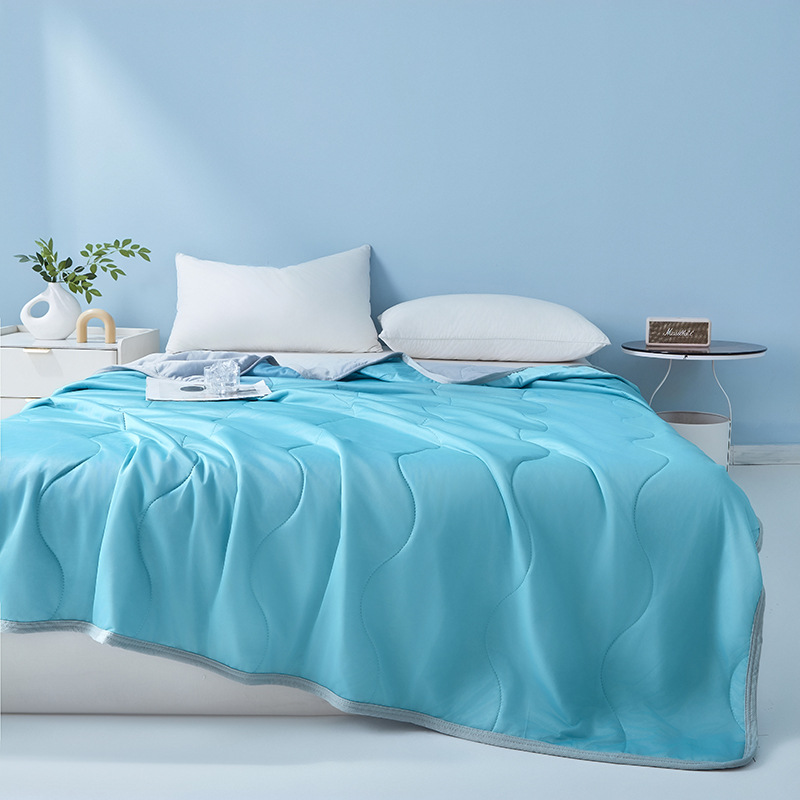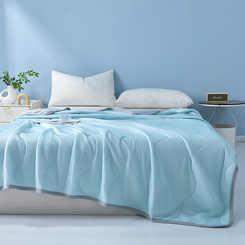 여름 신작 temu Xiyin TK 대외 무역 웨이브 체크 무늬 시원한 실크 여름 이불 가정용 기계 세탁 가능한 에어컨 이불 얇은 이불