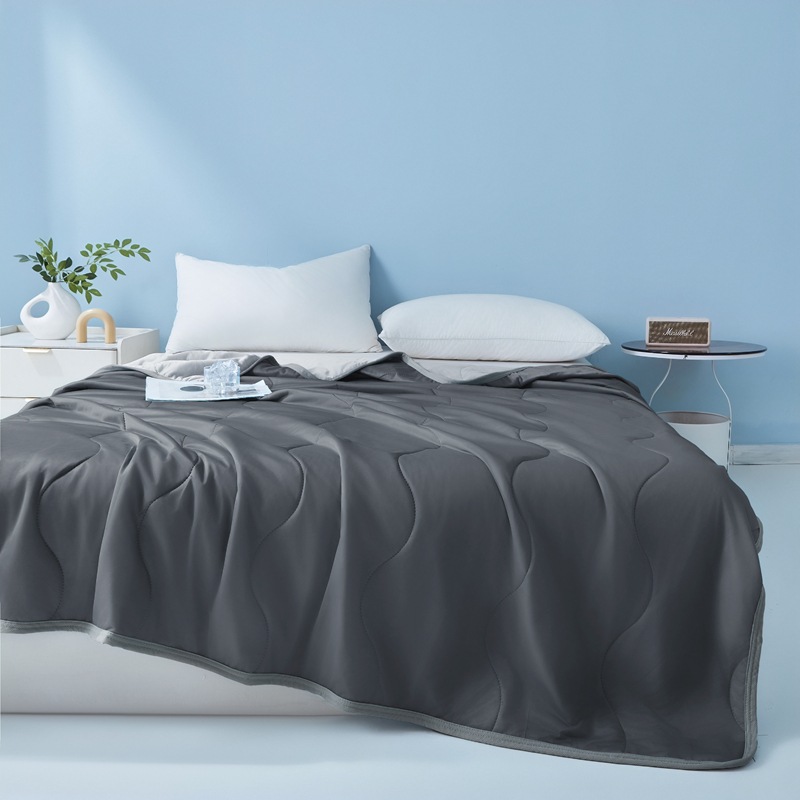 여름 신작 temu Xiyin TK 대외 무역 웨이브 체크 무늬 시원한 실크 여름 이불 가정용 기계 세탁 가능한 에어컨 이불 얇은 이불스토어 가기