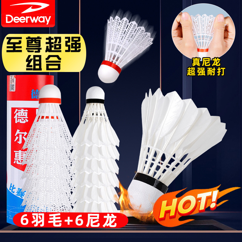 Delhui 배드민턴 내구성 킹 정품 3/6/12 팩 깨진 거위 깃털 야외 경기 세트 훈련 공