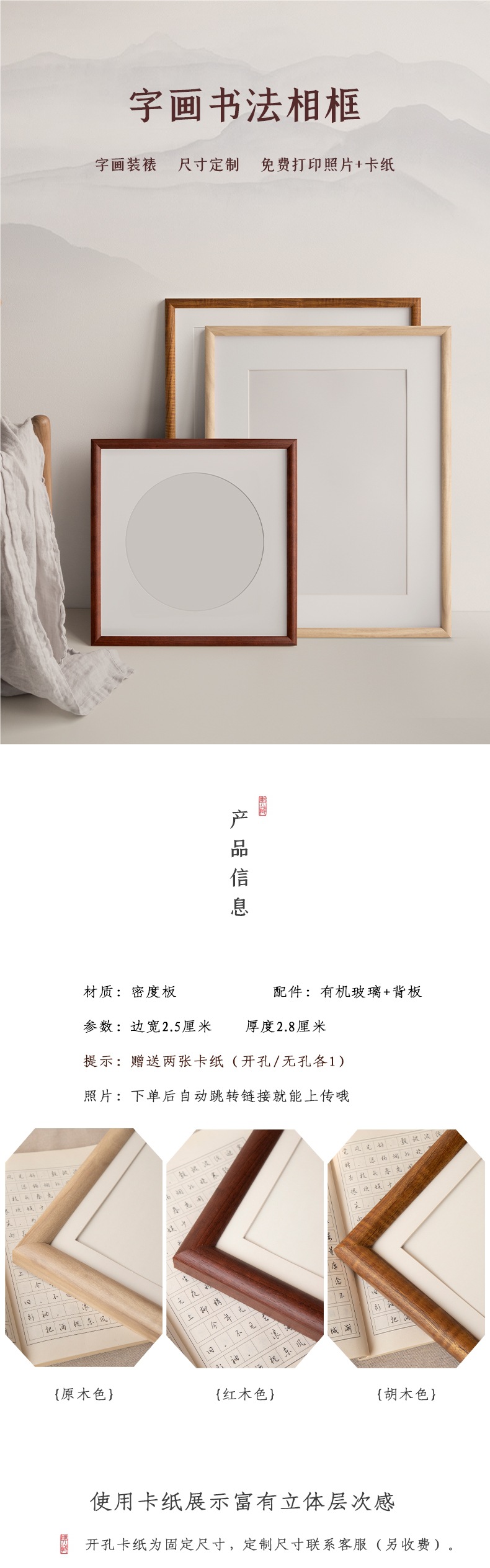 • 표준 14inch [27.2*35.4cm] 벽걸이 + 구멍 없는 판지 + 1mm 베이지 판지 가장자리 너비 2.8cm
