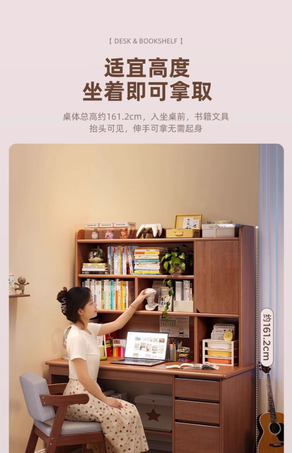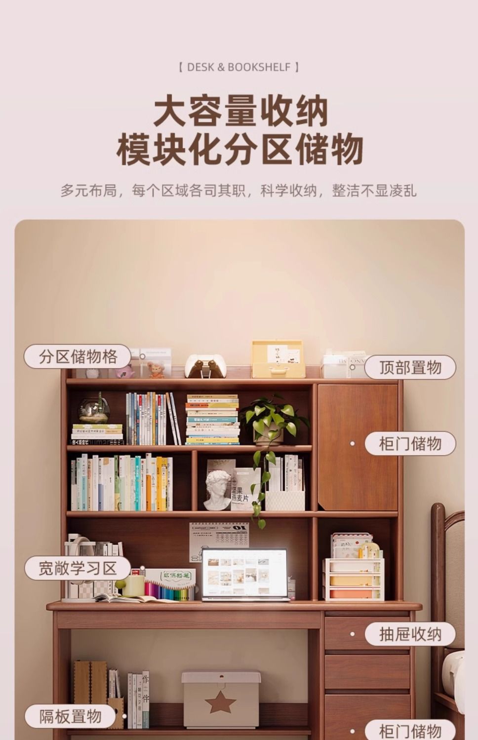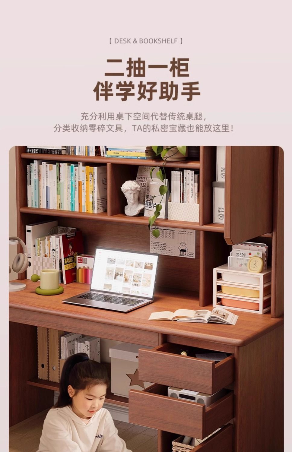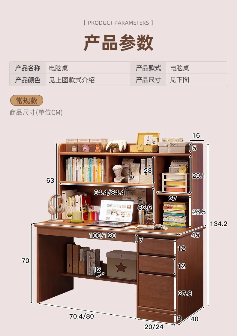 단단한 나무 책상 학생 집 학습 책상 침실 책장 통합 테이블 책장 서랍 성인 컴퓨터 책상