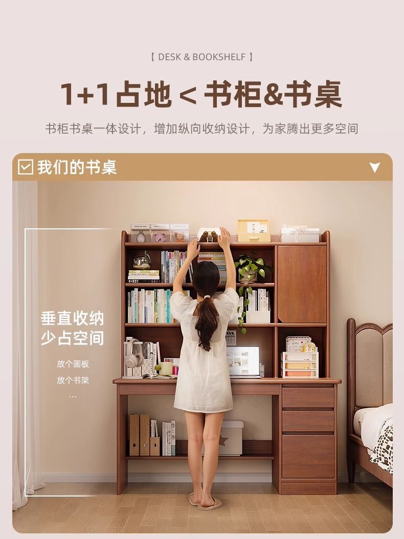 단단한 나무 책상 학생 집 학습 책상 침실 책장 통합 테이블 책장 서랍 성인 컴퓨터 책상스토어 가기