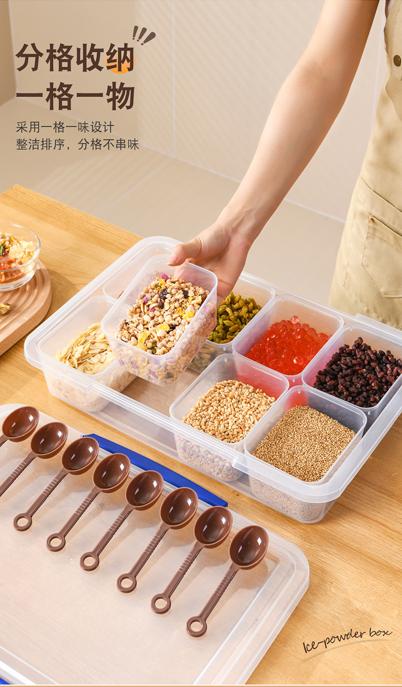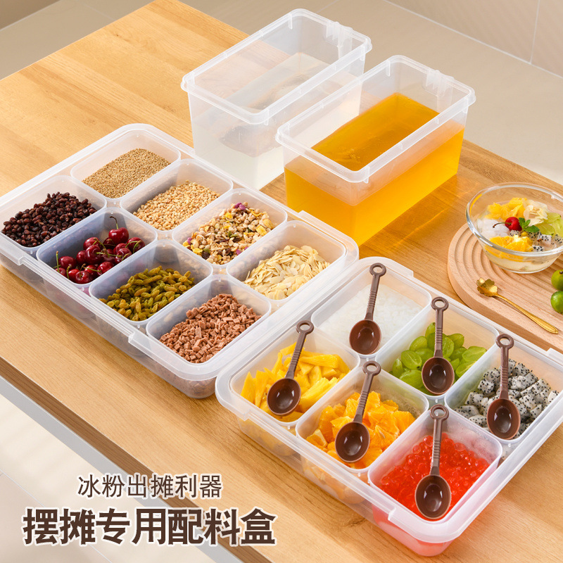 얼음가루 재료박스, 8칸 상업용 투명 대용량 컨테이너박스, 뚜껑이 있는 풀세트, 보관박스 2025 신형