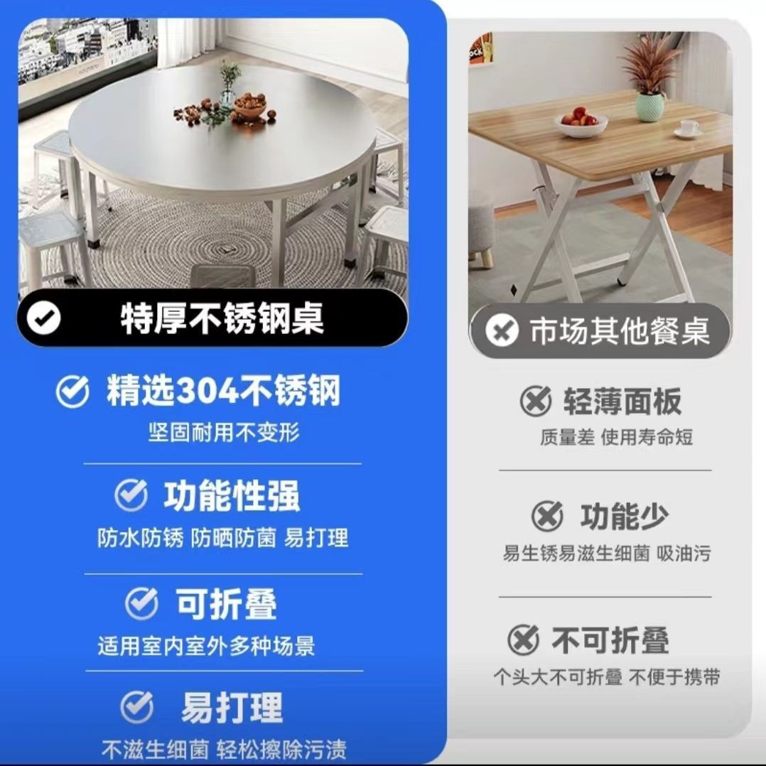 접이식 테이블 304 스테인레스 스틸 원형 테이블 턴테이블 호텔 터미널 테이블 가정용 식사 원형 식탁스토어 가기