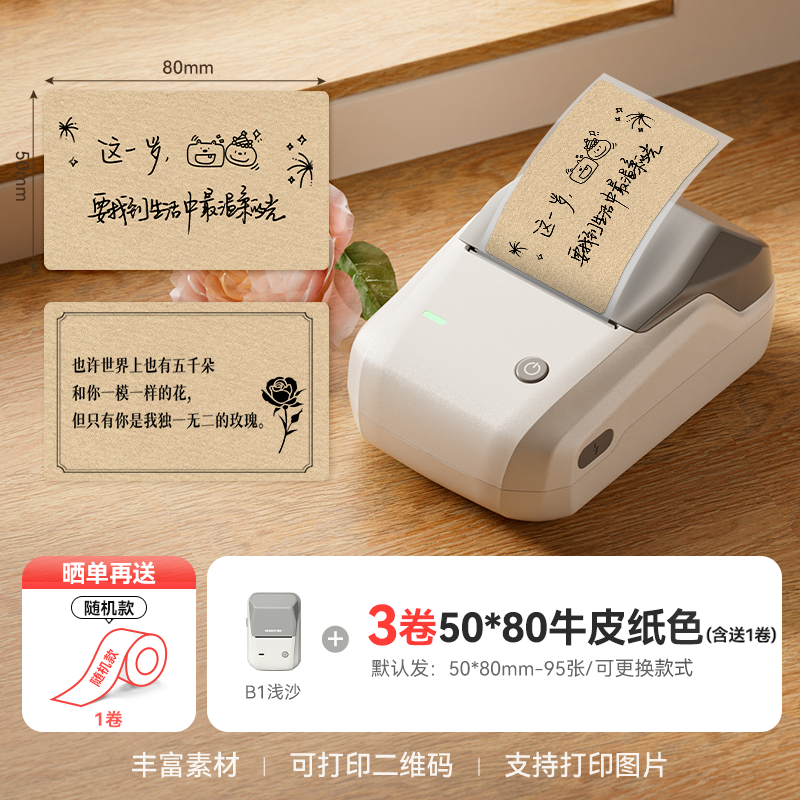 • B1 라이트 샌드 + 무료 흰색 카드 스티커 1롤, 80개 + 주문 시 추가 1롤