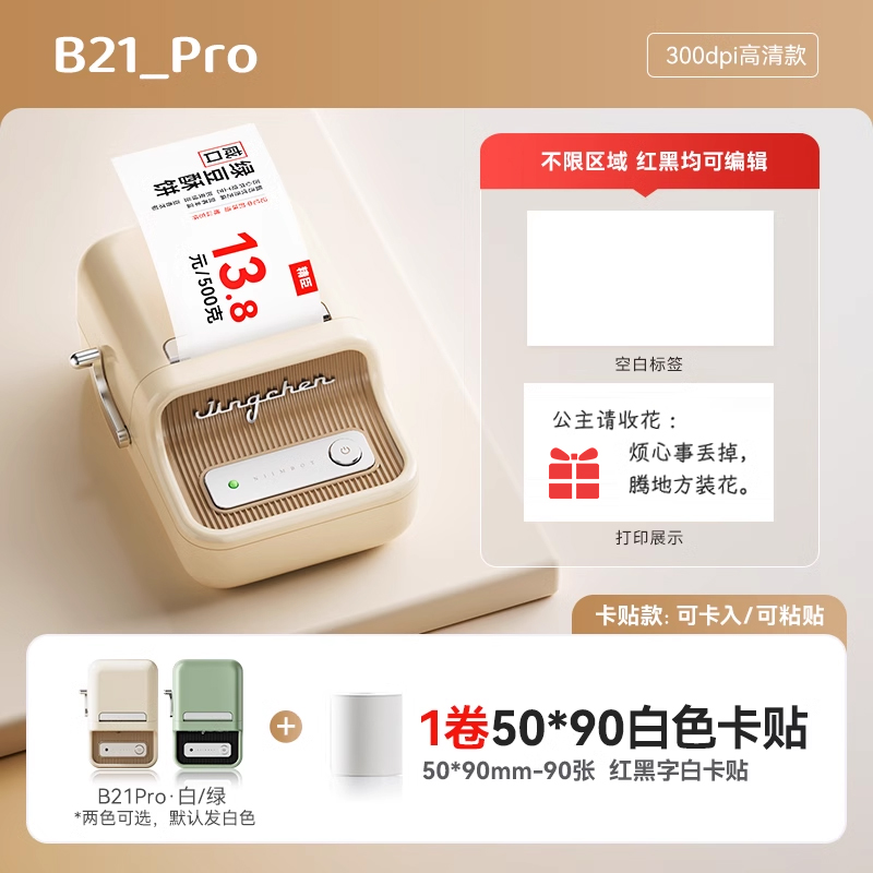 • B21Pro+1롤[빨간색과 검정색 2색] 50*90 흰색 카드 스티커