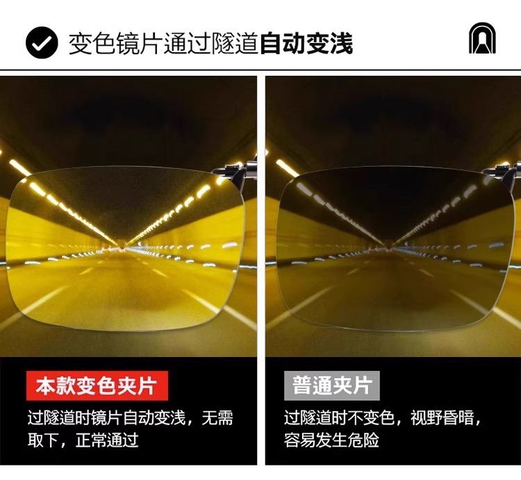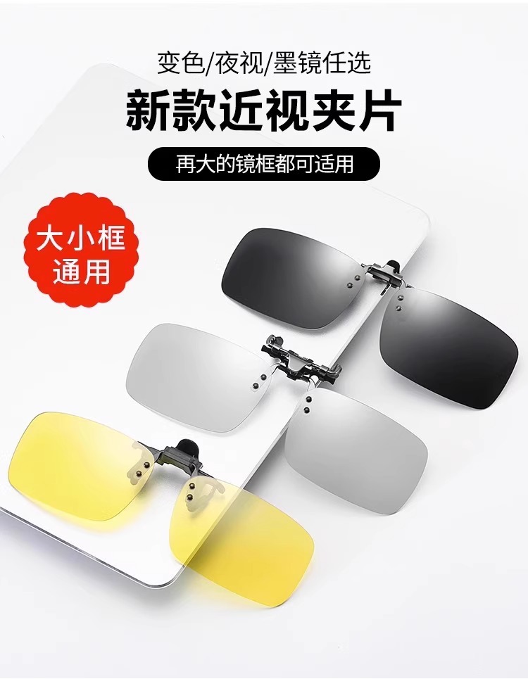 클립온 선글라스, 근시용 안경, 남녀공용 편광변색 선글라스, 운전용 낚시용 데이나이트 렌즈