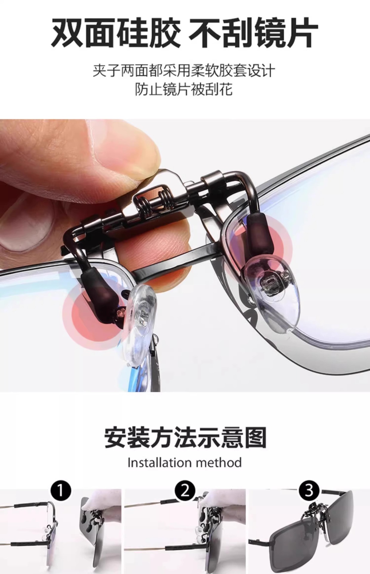 • 나이트 비전 클립 [밝아지고 하이빔 방지 - 야간용 특수 모델] 안경 천과 안경 케이스가 함께 제공됩니다.