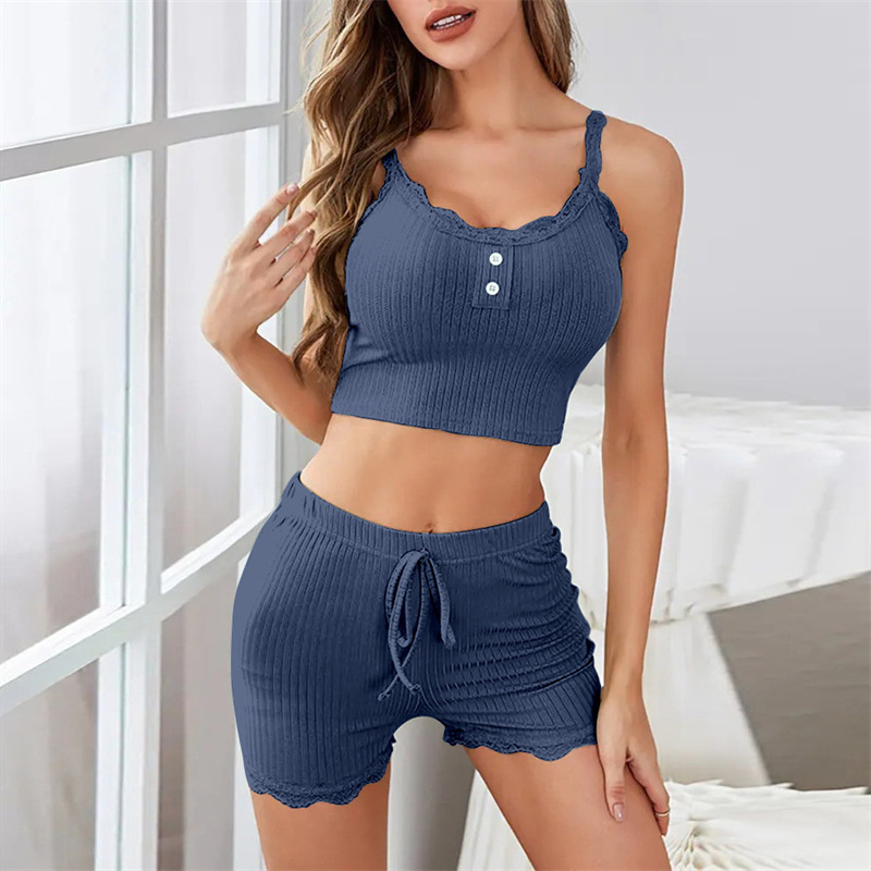 국경 간 여성 홈웨어 여름 편안한 서스펜더 반바지 투피스 세트 Amazon 홈웨어 잠옷 여성 세트스토어 가기