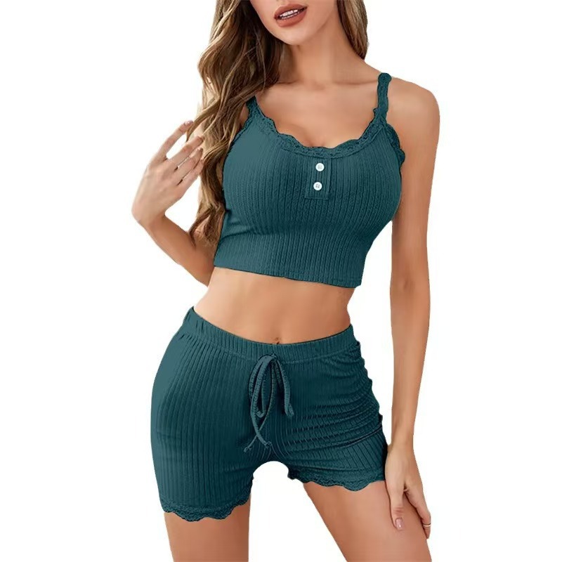 국경 간 여성 홈웨어 여름 편안한 서스펜더 반바지 투피스 세트 Amazon 홈웨어 잠옷 여성 세트