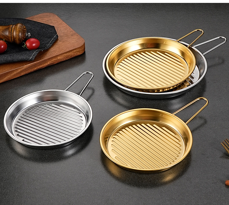 한국 스테인레스 스틸 피자 팬 원형 싱글 핸들 베이킹 팬 상업용 감자 튀김 치킨 팬 냉면 팬 해산물 팬