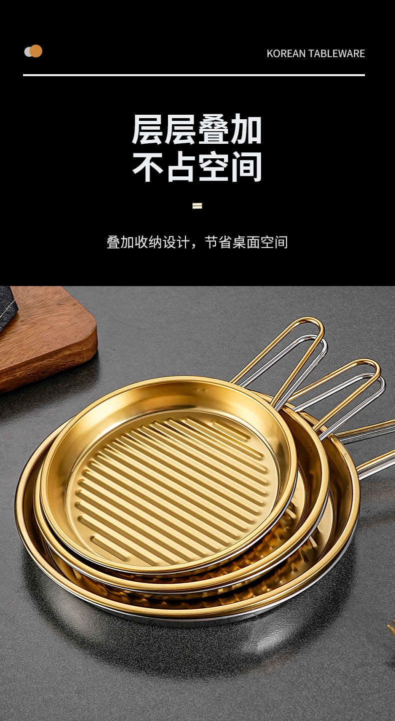 한국 스테인레스 스틸 피자 팬 원형 싱글 핸들 베이킹 팬 상업용 감자 튀김 치킨 팬 냉면 팬 해산물 팬스토어 가기