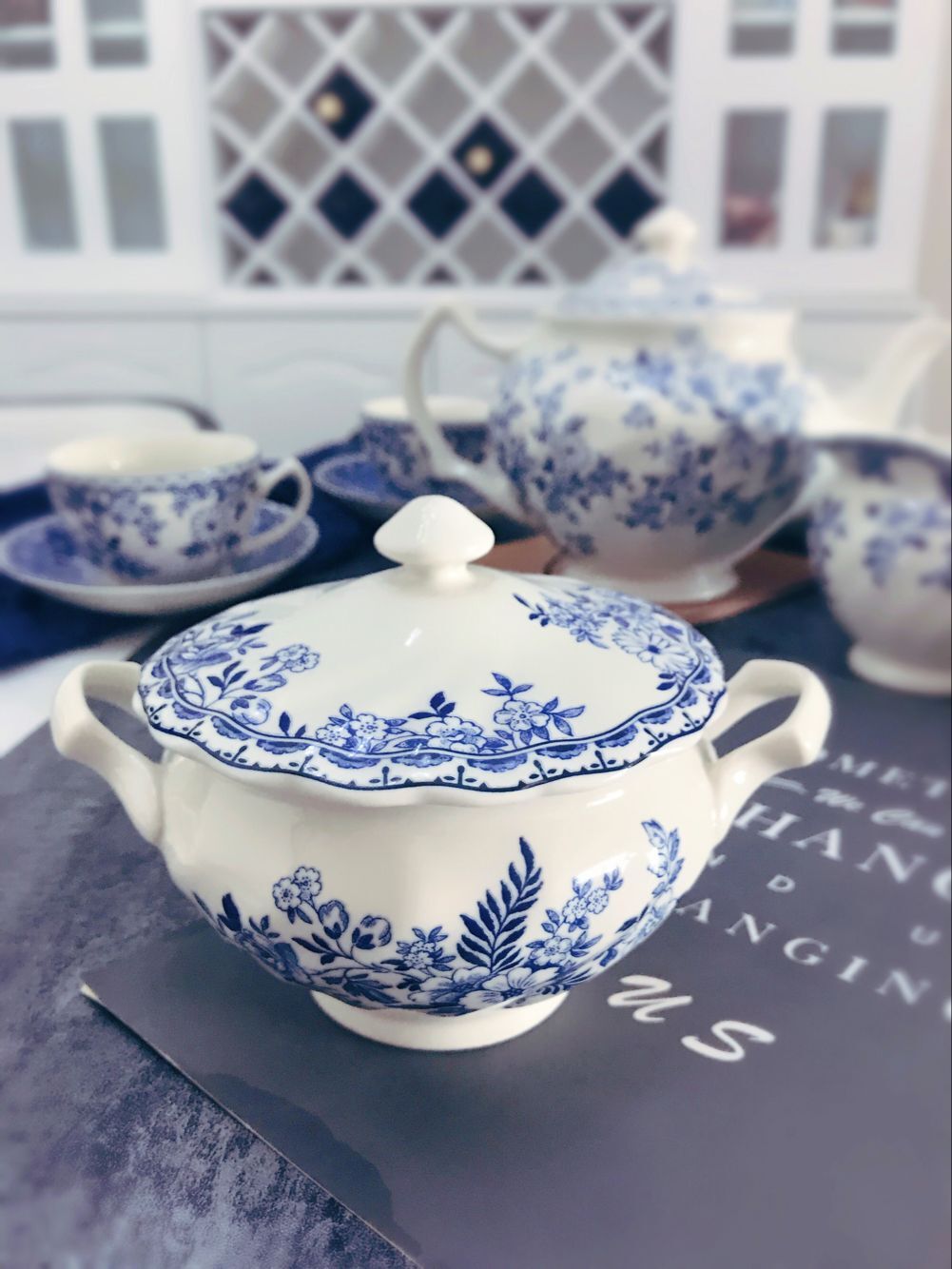 오리지널 영국 오리지널 JBS 청백색 세라믹 중국 및 서양 스타일 언더글레이즈 스테이크 접시 디저트 그릇 가정용