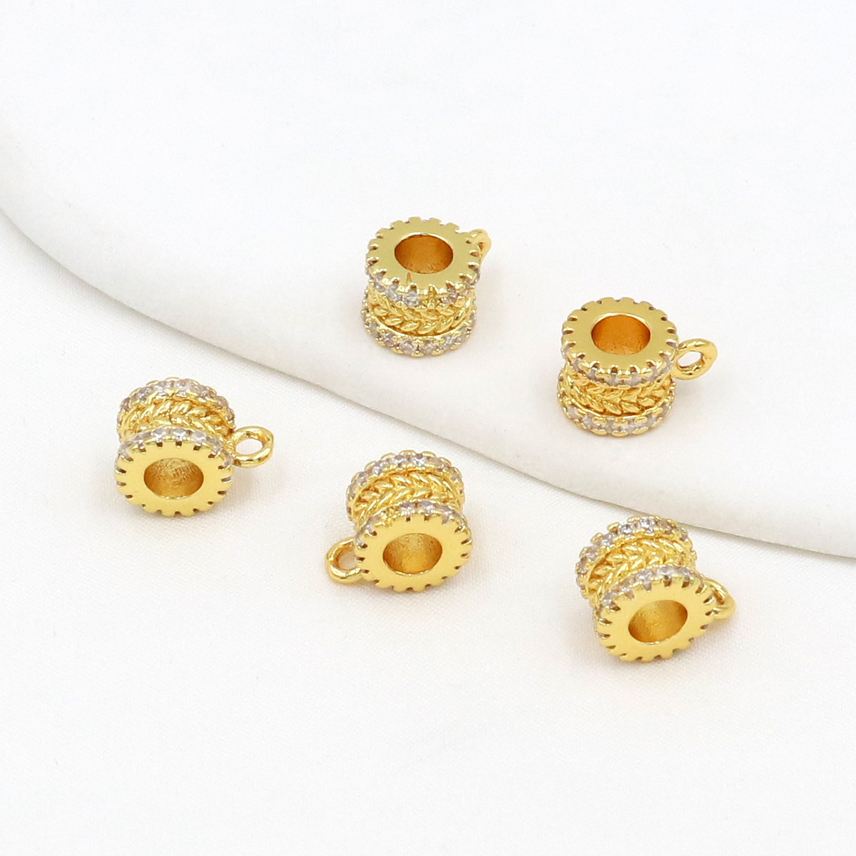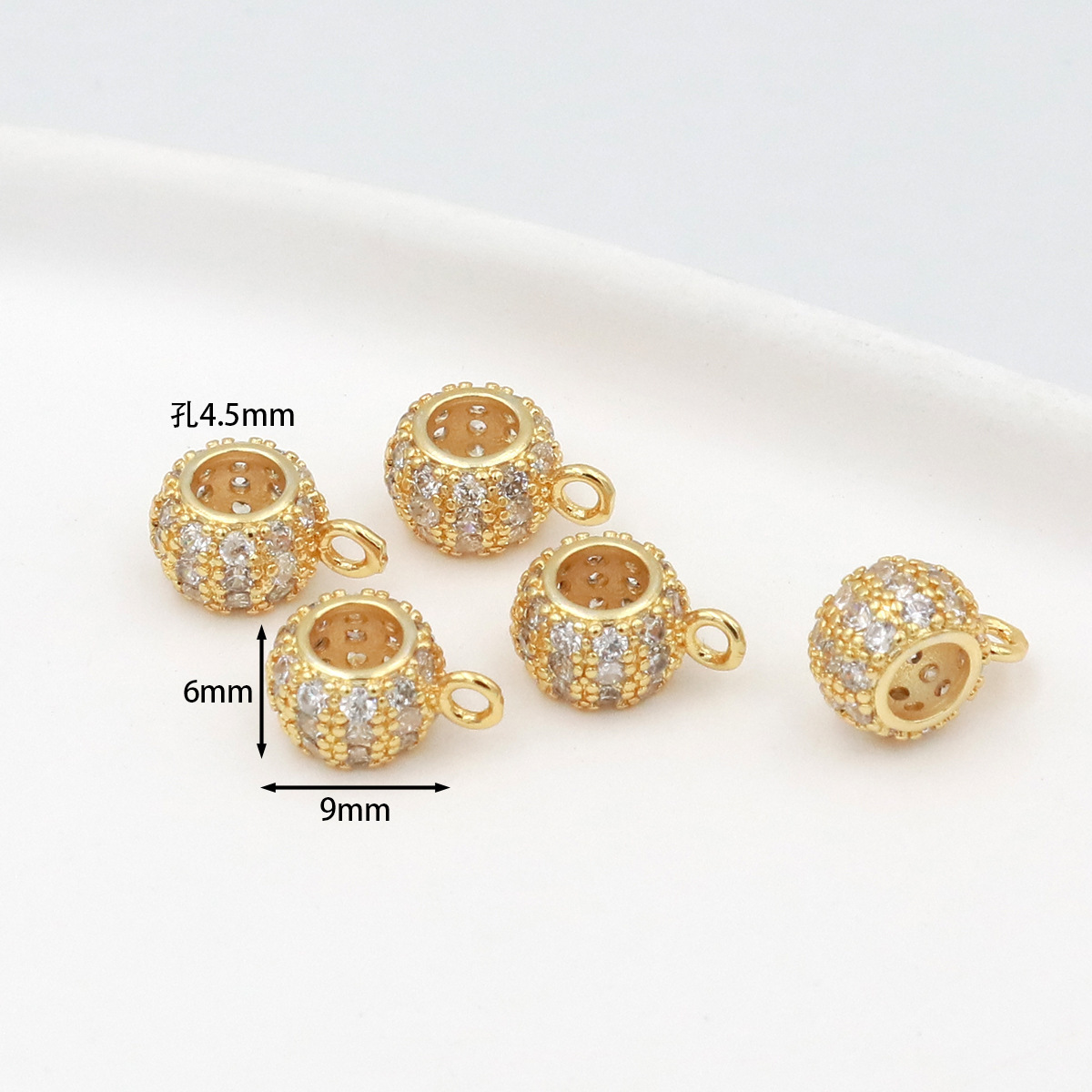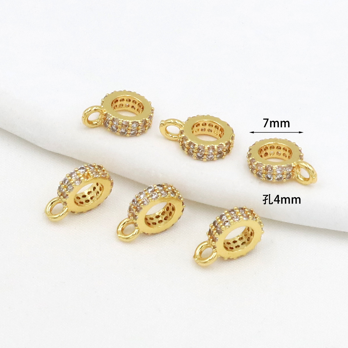 색상 보존 14K 금으로 채워진 지르콘 배럴 비드 휠 비드 스페이서 비드 펜던트 버클 액세서리 DIY 장식 C44