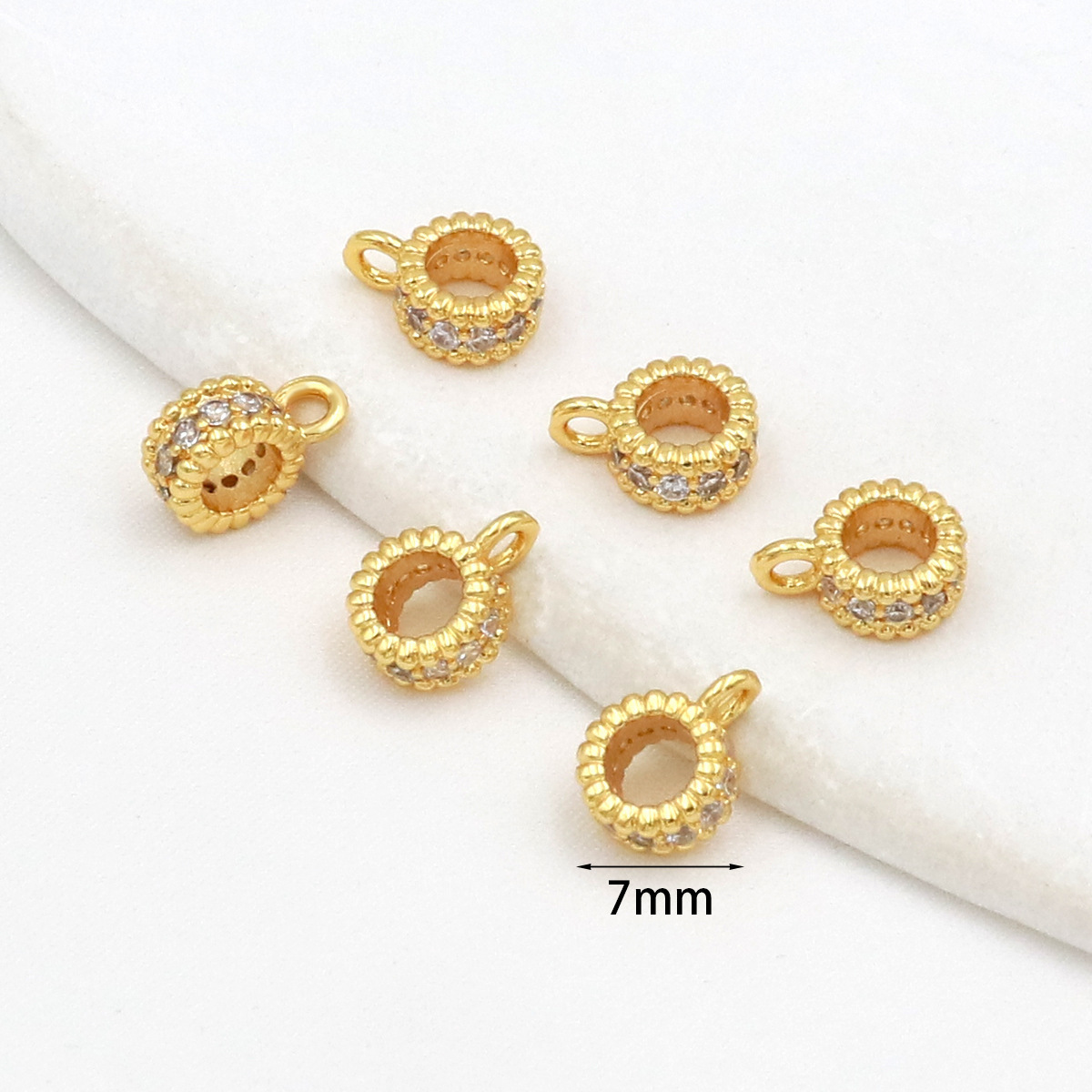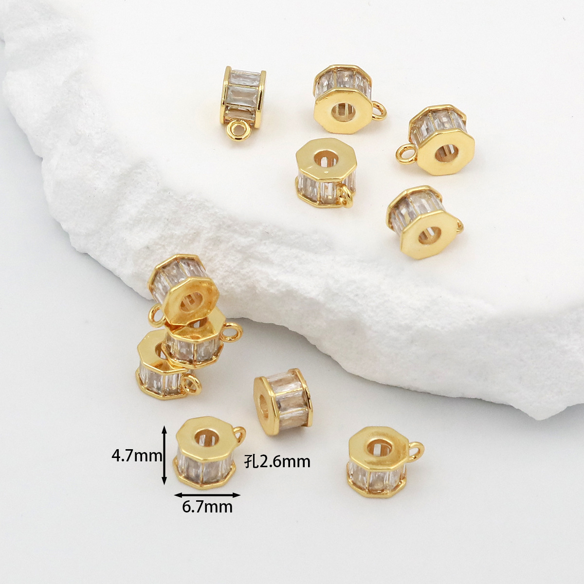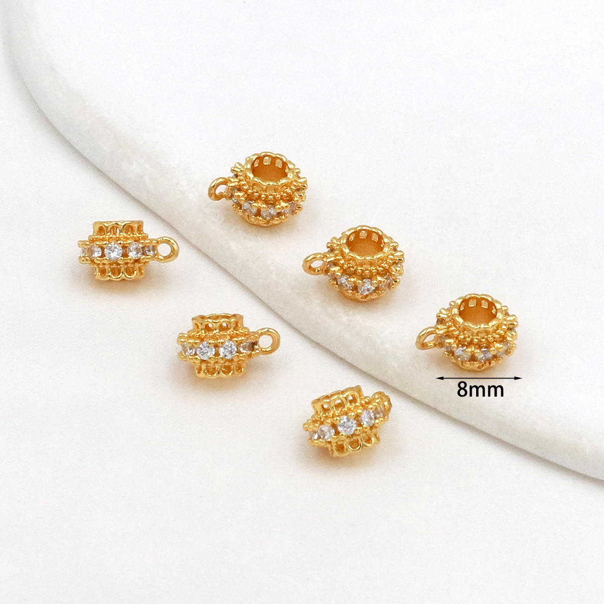 색상 보존 14K 금으로 채워진 지르콘 배럴 비드 휠 비드 스페이서 비드 펜던트 버클 액세서리 DIY 장식 C44