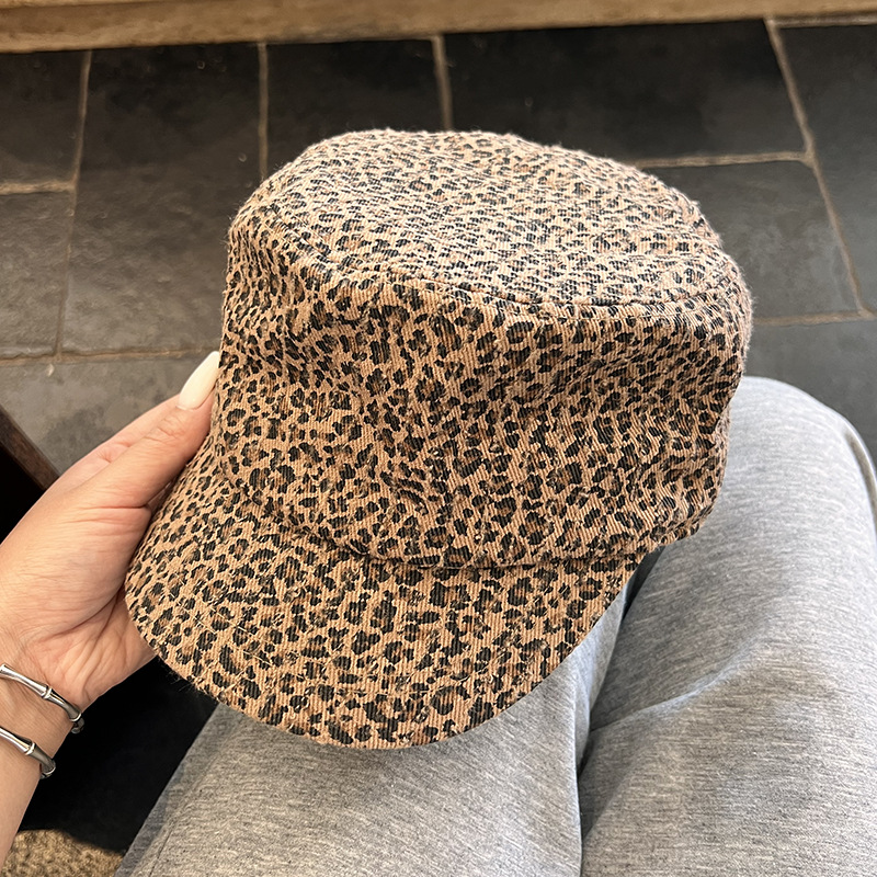 여성을 위한 새로운 레오파드 프린트 패셔너블한 틈새 플랫 캡, 복고풍 스트리트 트렌디 캐주얼 다용도 고품질 덕빌 캡스토어 가기