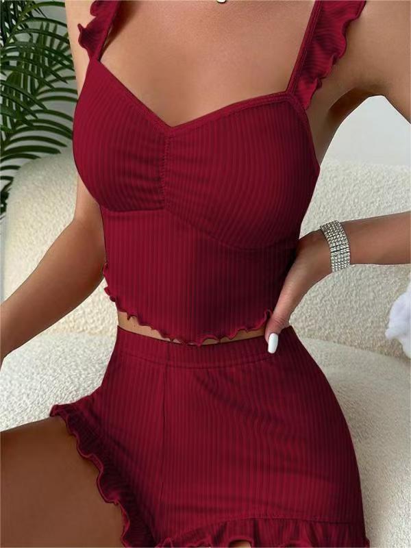 아마존 베스트 셀러 섹시한 서스펜더 잠옷 서스펜더 반바지 유럽과 미국 스타일의 여성 잠옷 홈웨어 투피스 세트