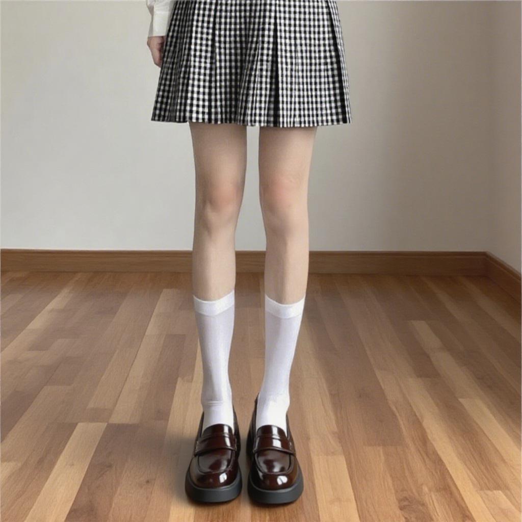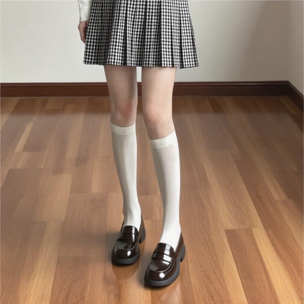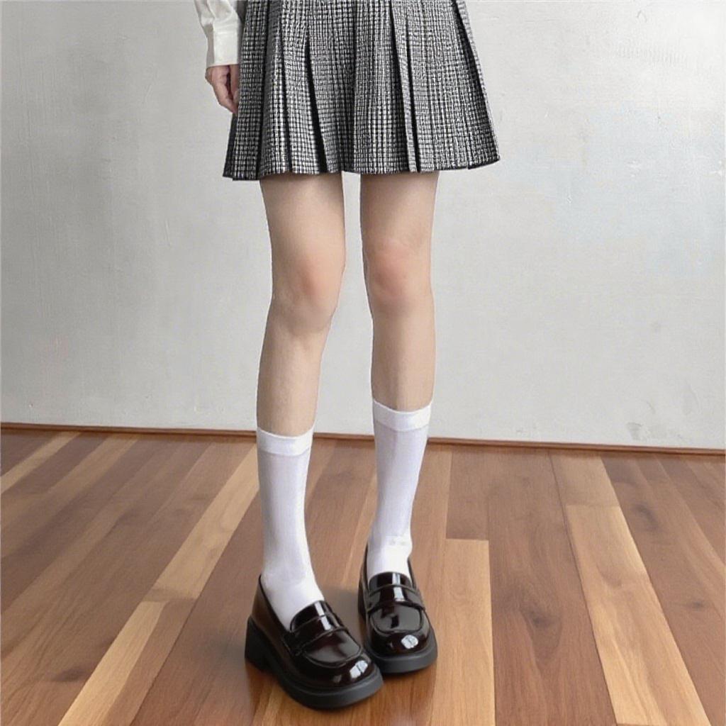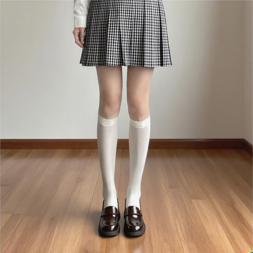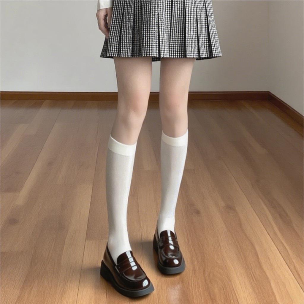 벨벳 밀크 화이트 롱 튜브 종아리 양말 여름 얇은 여성 솔리드 컬러 대학 스타일 jk 하프 무릎 스타킹