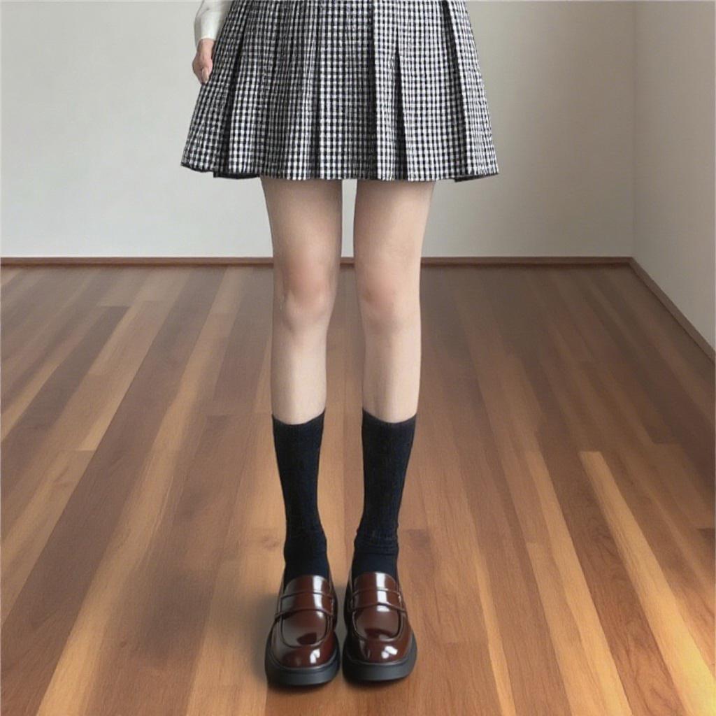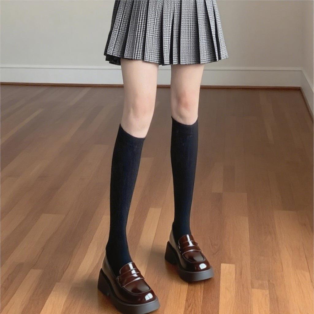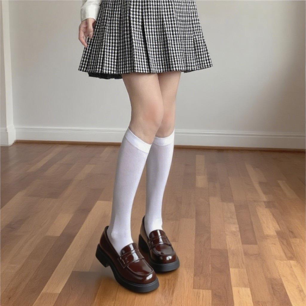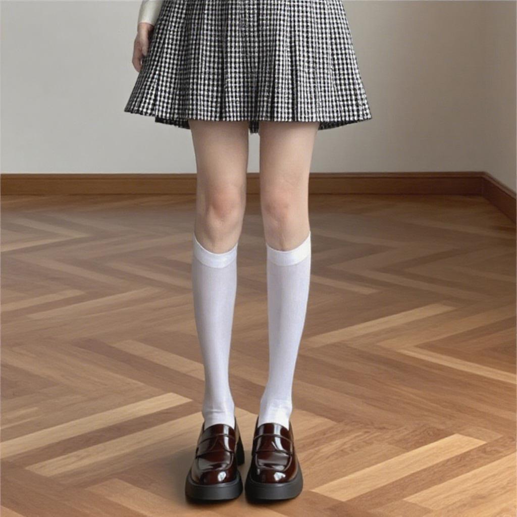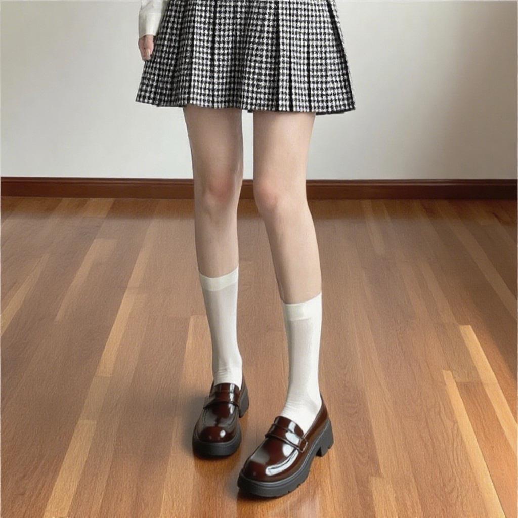 벨벳 밀크 화이트 롱 튜브 종아리 양말 여름 얇은 여성 솔리드 컬러 대학 스타일 jk 하프 무릎 스타킹