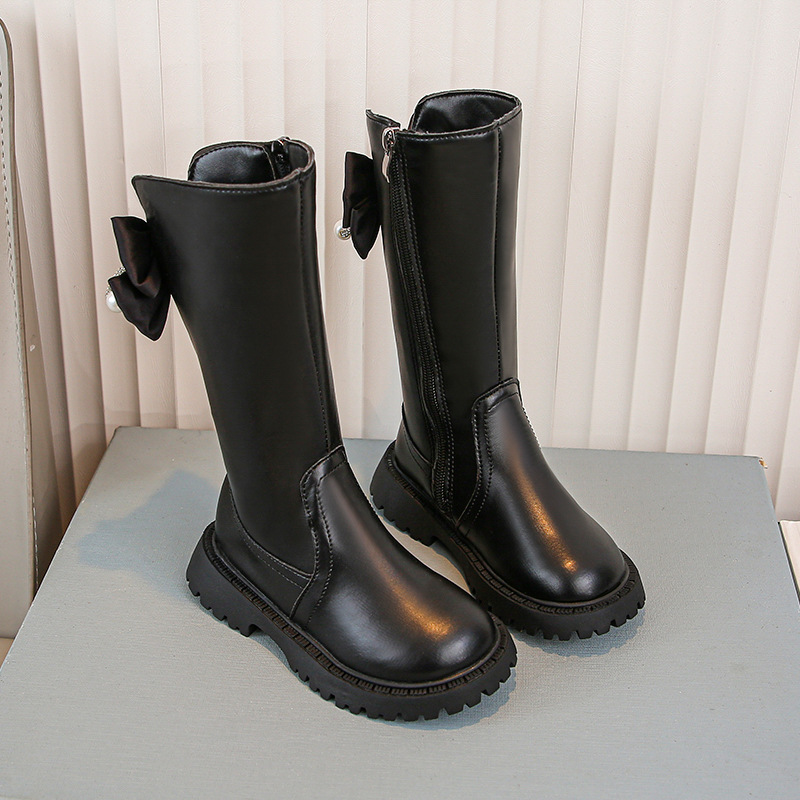 어린이 부츠 2025 새로운 가을, 겨울 벨벳 소녀 한국어 버전 영국 하이 부츠 어린 소녀 부츠 공주 가죽 부츠스토어 가기