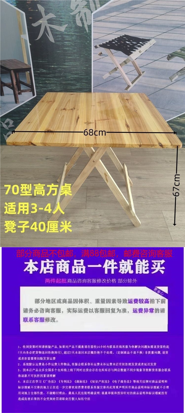 접이식 테이블 휴대용 전나무 테이블 가정용 간단한 식사 야외 스톨 임대 집 학습 테이블스토어 가기