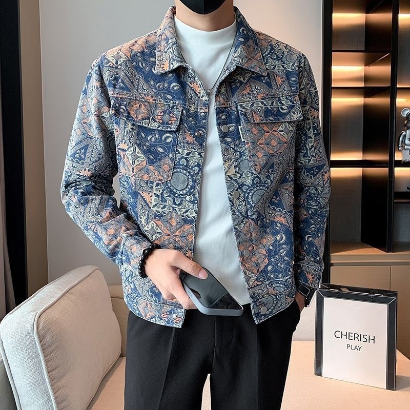 남성 2025 신작 프린트 재킷 캐주얼 슬림 핏, 멋스럽고 트렌디한 다용도 라펠 탑 재킷 봄, 가을스토어 가기