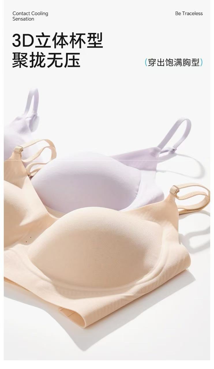 작은 가슴을 가진 여성을 위한 리퀴드 파운데이션 살색 보이지 않는 속옷, 푸쉬업, 무봉제 여름용 얇은 얼음 실크 통기성 아름다운 등 젤리 브라