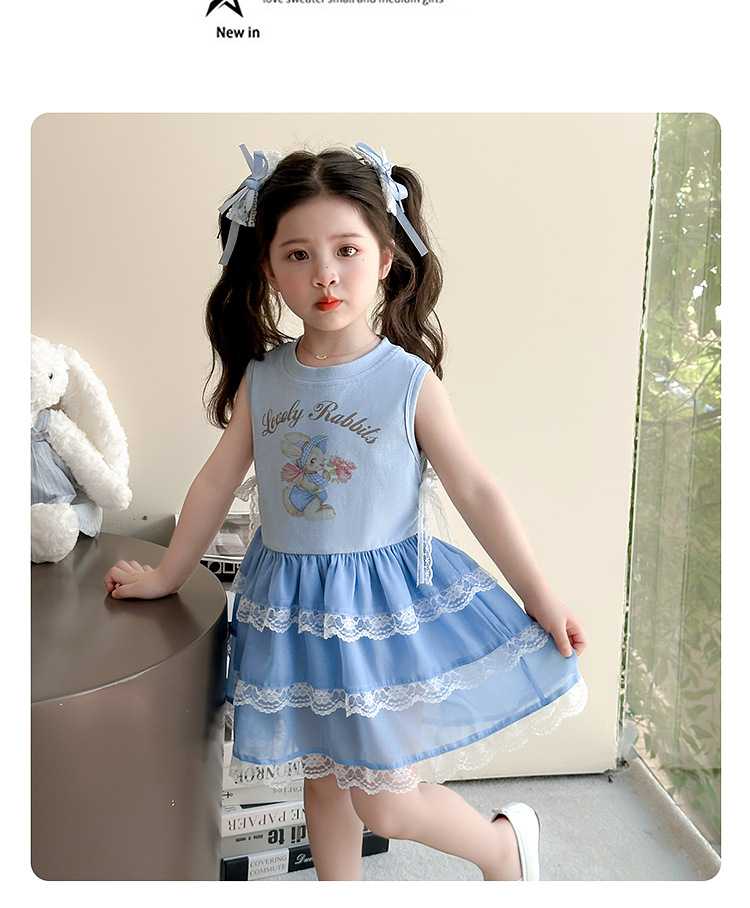 여자 조끼 드레스 여름 2025 새로운 스타일 어린이 만화 면화 조끼 드레스 여자 케이크 스커트