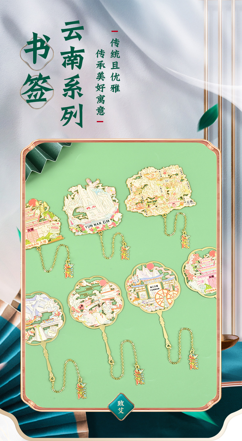 운남 시리즈 금속 책갈피 Xishuangbanna Lijiang Ancient City Dali Yulong Snow Mountain Scenic Area 문화 및 창의적 주변 책갈피스토어 가기