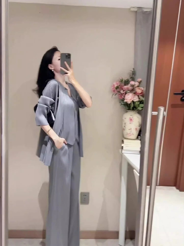 미야케 2025 봄 신작 슈트 슬림 캐주얼 팬츠 여성 다용도 주름 솔리드 컬러 조끼 3 피스 세트스토어 가기