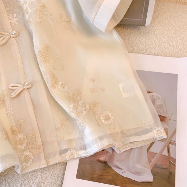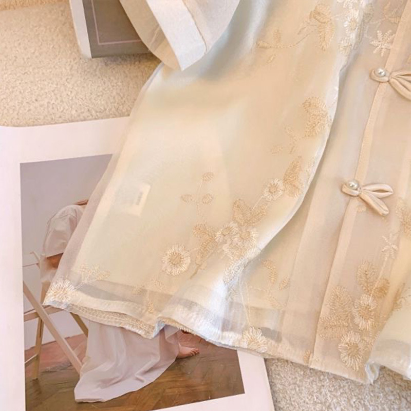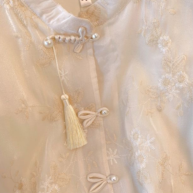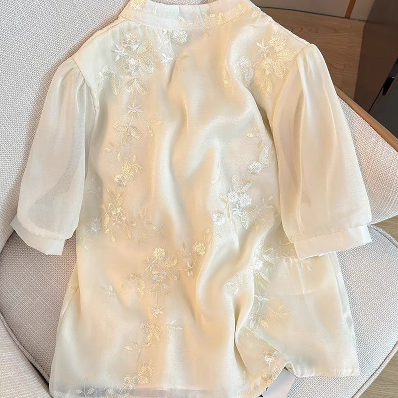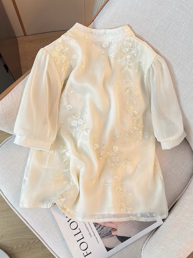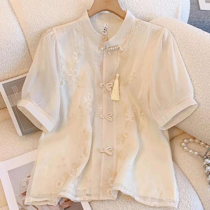 여성용 쉬폰 셔츠 여름 반팔 2025 새로운 디자인 틈새 프랑스 짧은 새로운 중국 스타일 버튼 탑스토어 가기