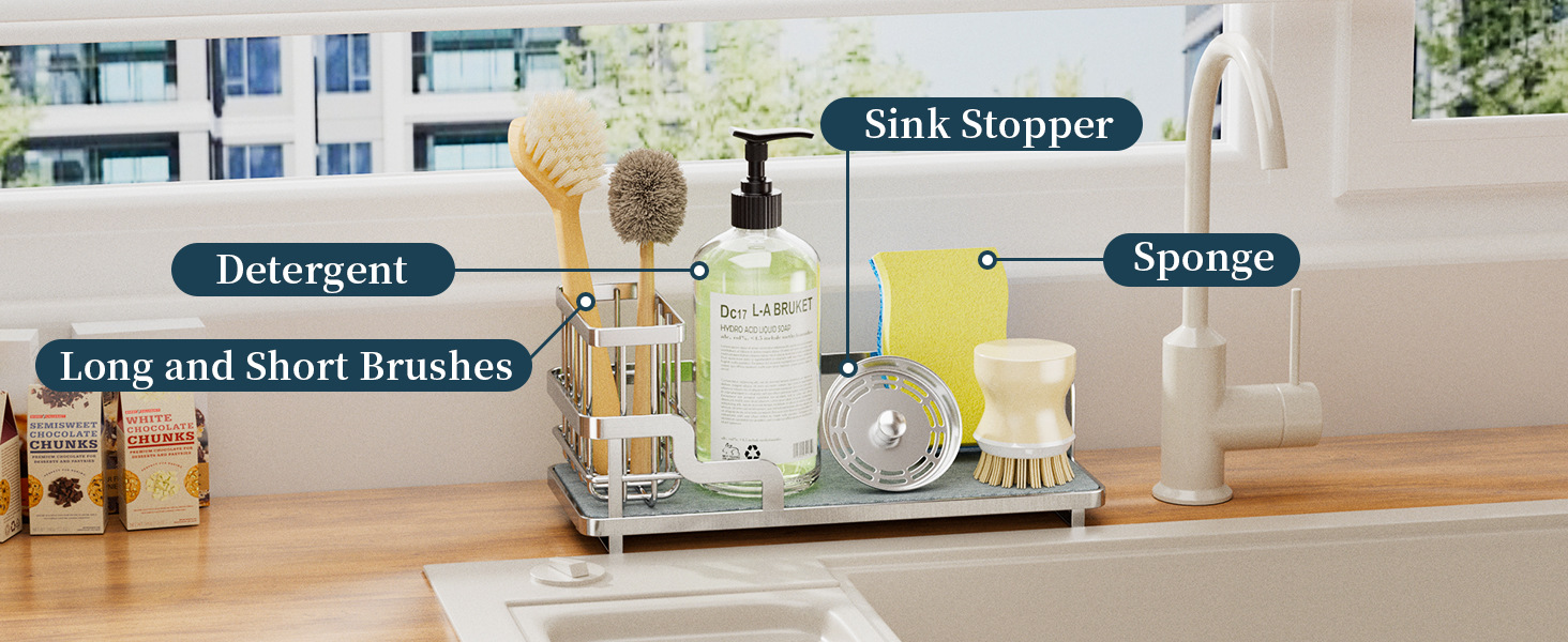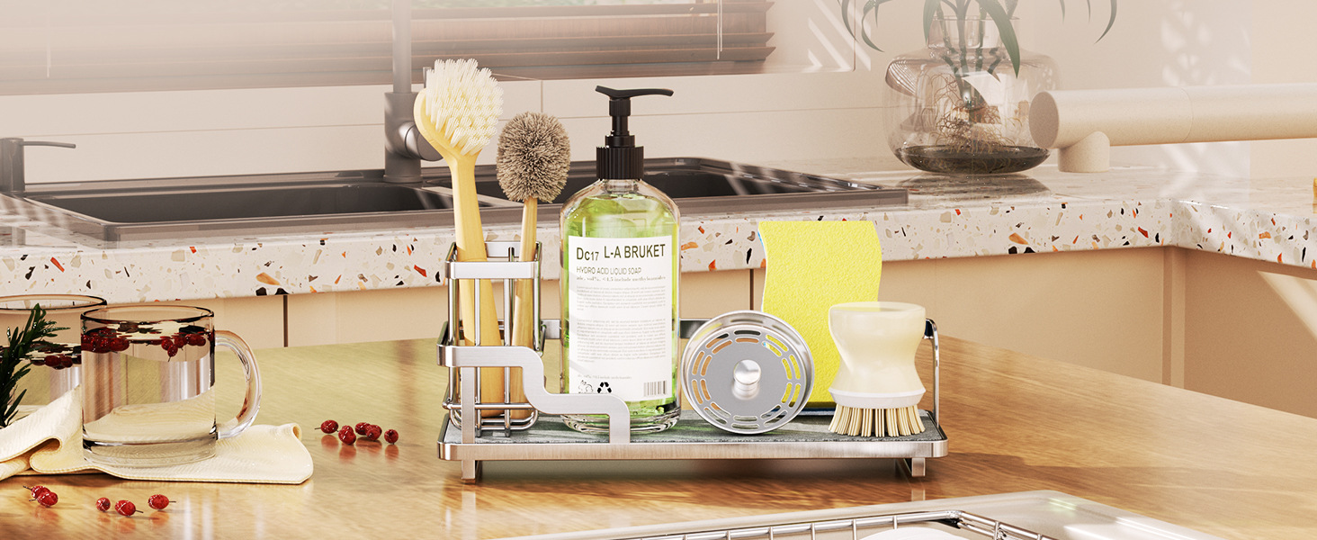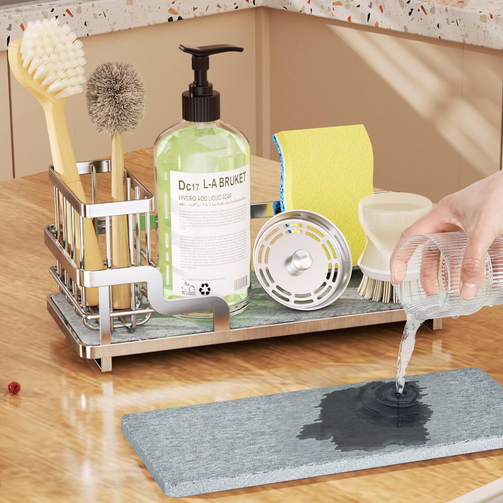 흡수성 석재 브러시 홀더가있는 맞춤형 스테인레스 스틸 주방 싱크대 보관함 녹 방지 배수 보관함 규조토