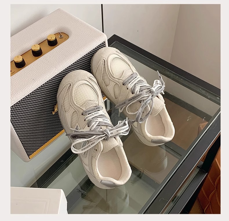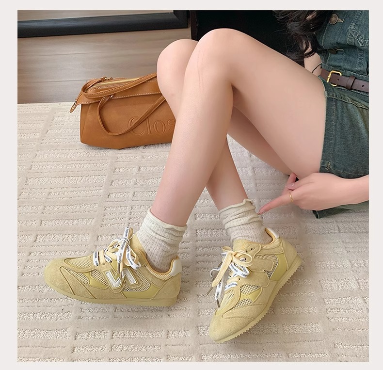 여성을위한 메쉬 통기성 강화 도덕 훈련 신발 2025 봄과 여름 새로운 스타일 더블 신발 끈 캐주얼 발을 보여주는 작은 포레스트 검프 신발 스포츠 신발