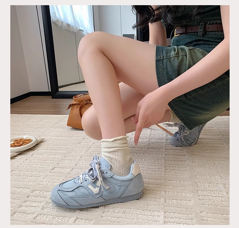 여성을위한 메쉬 통기성 강화 도덕 훈련 신발 2025 봄과 여름 새로운 스타일 더블 신발 끈 캐주얼 발을 보여주는 작은 포레스트 검프 신발 스포츠 신발스토어 가기