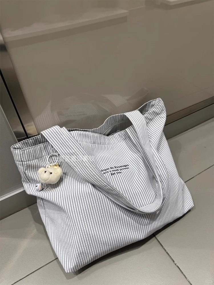 대용량 캔버스 가방 새로운 캐주얼 스트라이프 게으른 단순 2025 통근 핸드백 다용도 숄더 토트스토어 가기