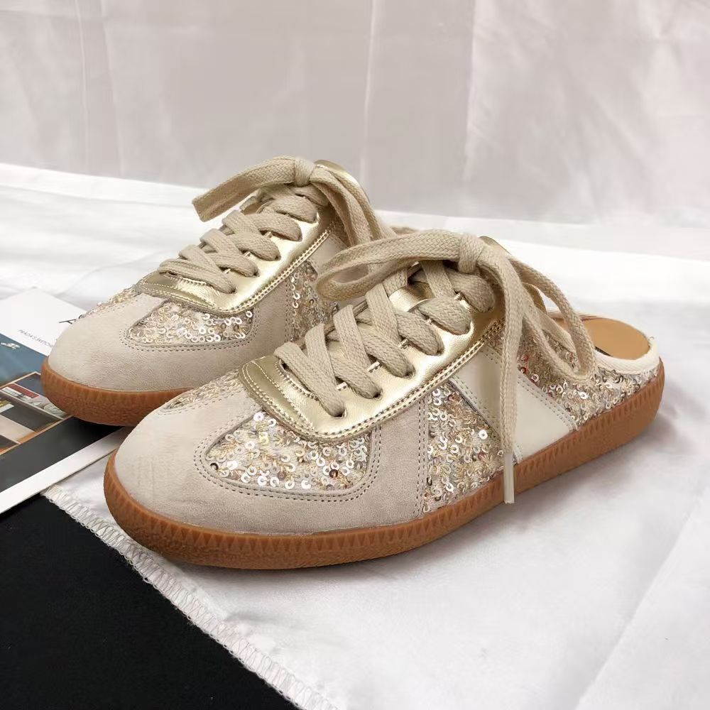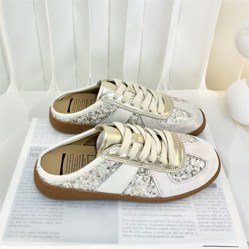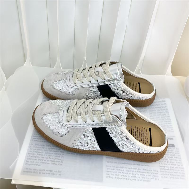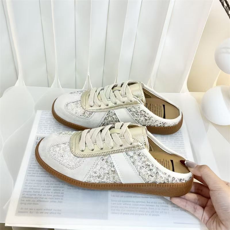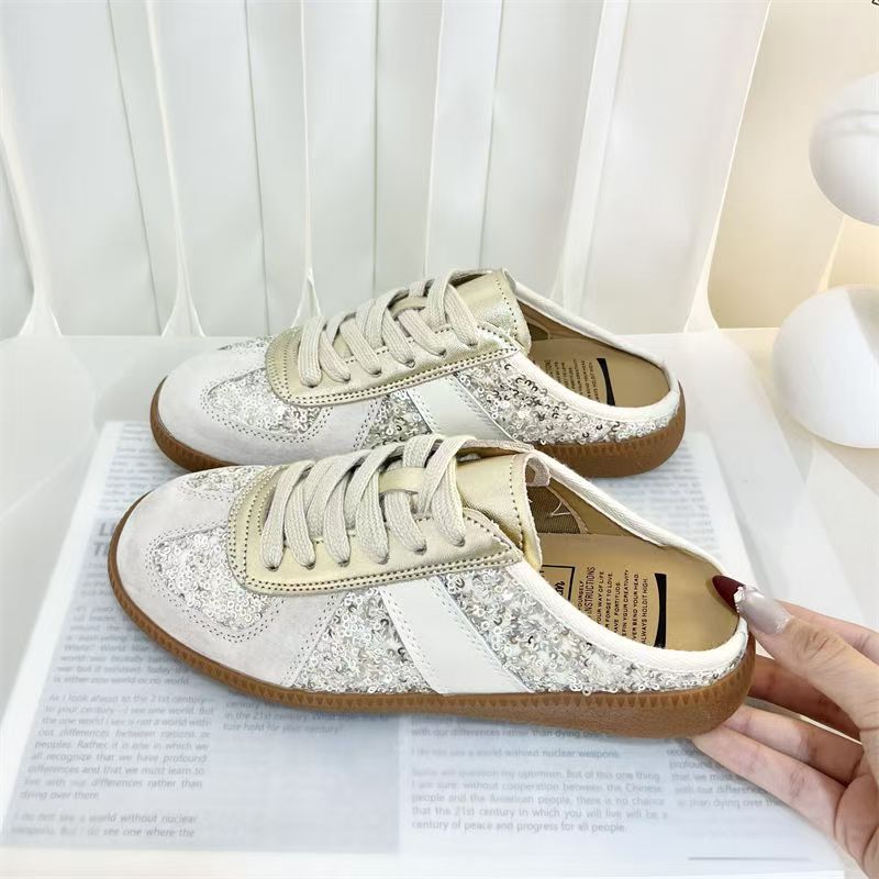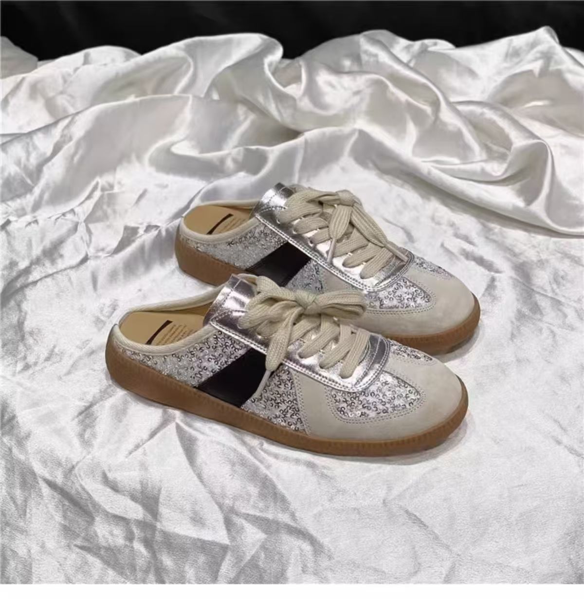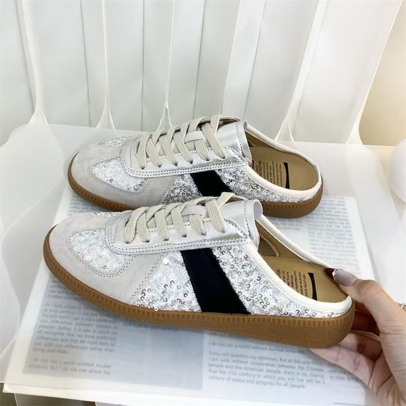 여성을 위한 캐주얼 도덕훈련 바오터우 하프 슬리퍼 2025 봄 여름 스타일 아우터웨어 레트로 두꺼운 밑창 힐리스 슬립온 슬립온 슈즈스토어 가기