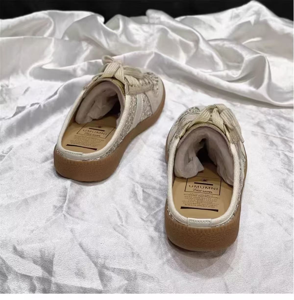 여성을 위한 캐주얼 도덕훈련 바오터우 하프 슬리퍼 2025 봄 여름 스타일 아우터웨어 레트로 두꺼운 밑창 힐리스 슬립온 슬립온 슈즈