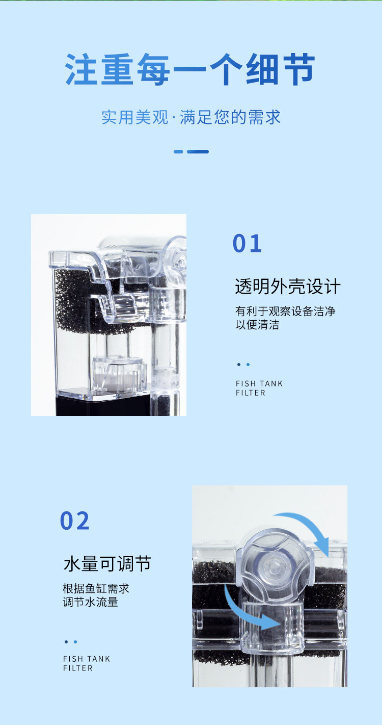 워터 펌프 물고기 폭포 소형 물 3-in-1 분산 필터링 3-in-1 흡입 미니 순환 필터 물 순환 벽걸이형 1스토어 가기