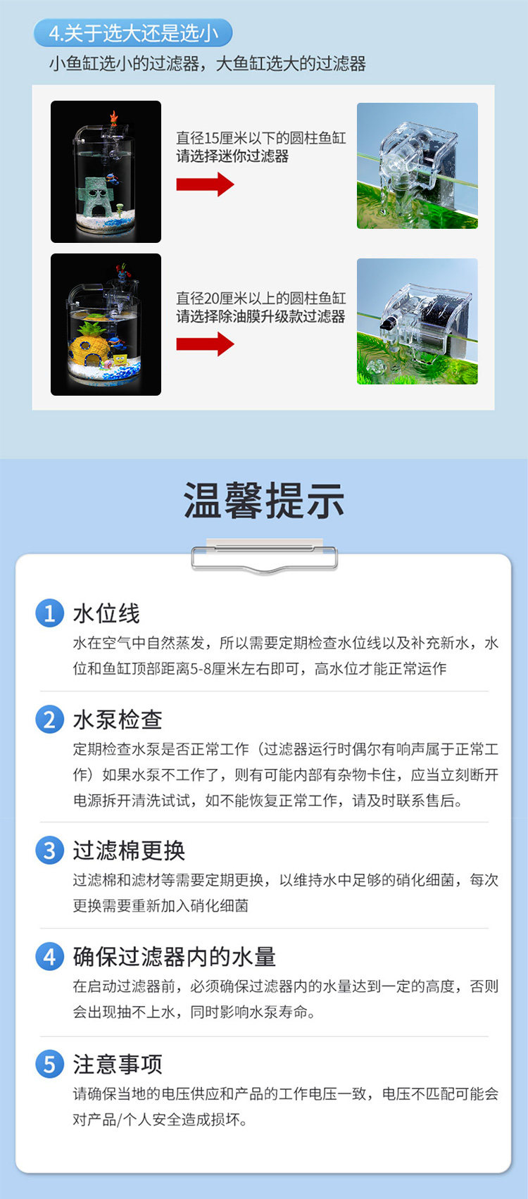 • 소형 탱크용 특수 필터(플러그형) + 소형 클립 램프