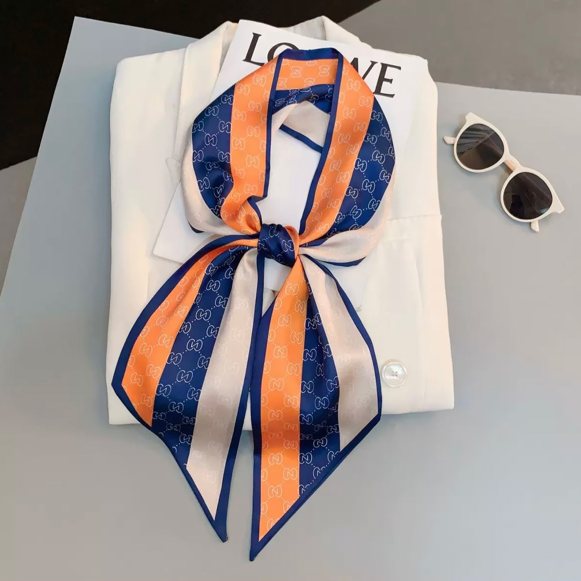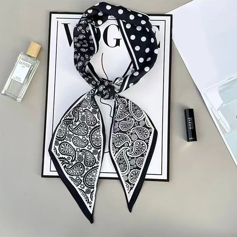 여성용 양면 긴 작은 실크 스카프, OL 리본, 봄 여름 한국 신작 장식 작은 스카프, 물방울 머리띠